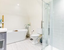 - Bathroom with freestanding bath, walk-in shower, basin, heated towel rail and WC