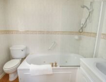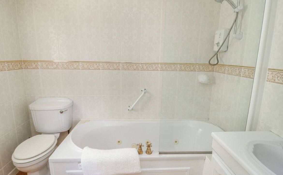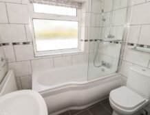 - Bathroom with bath, shower over, basin and WC