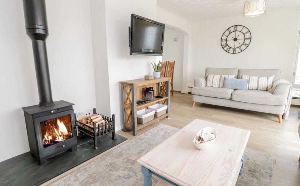 Relax on the sofas, light the woodburning stove and flick on the TV to unwind, with natural light flooding in from the many windows and sliding doors to the enclosed terrace.