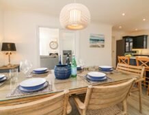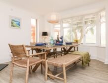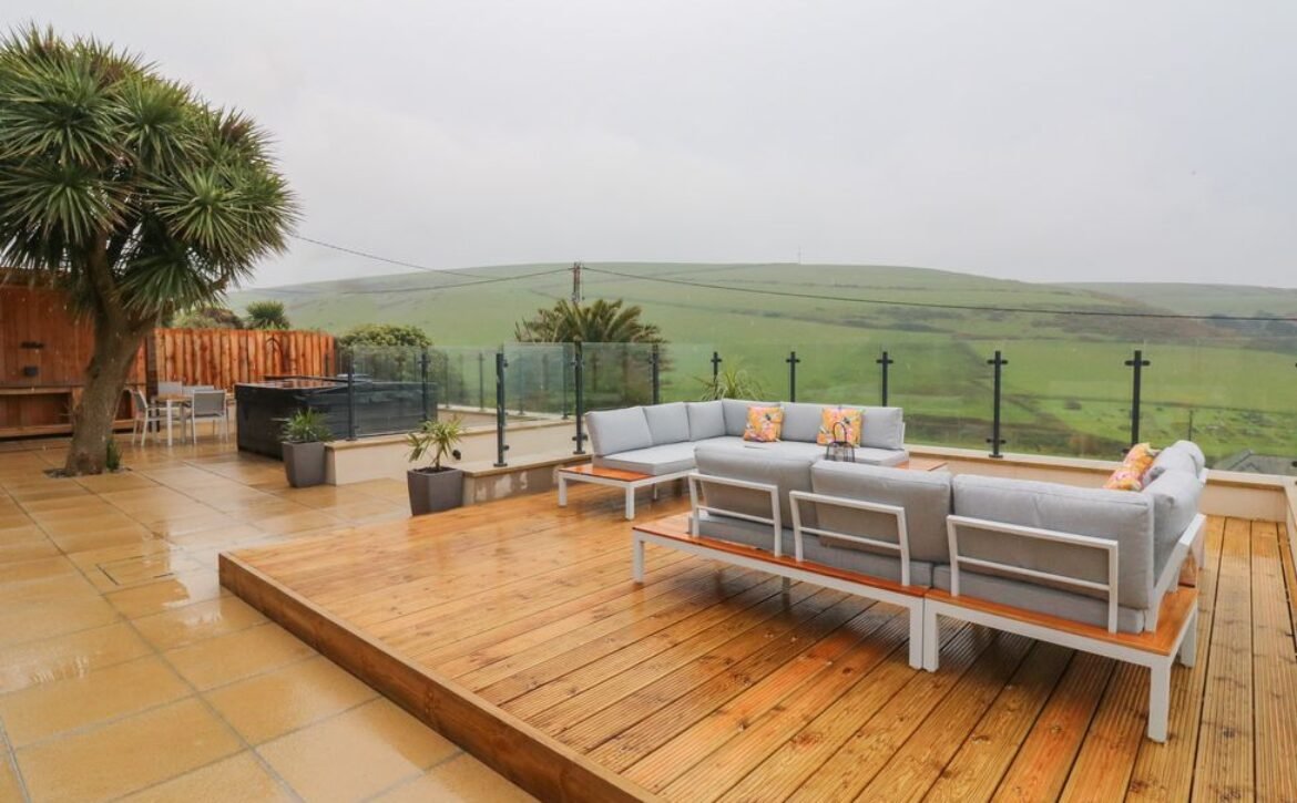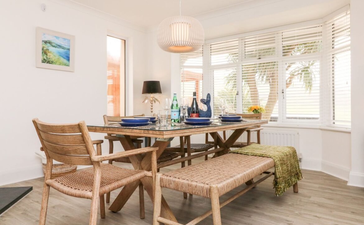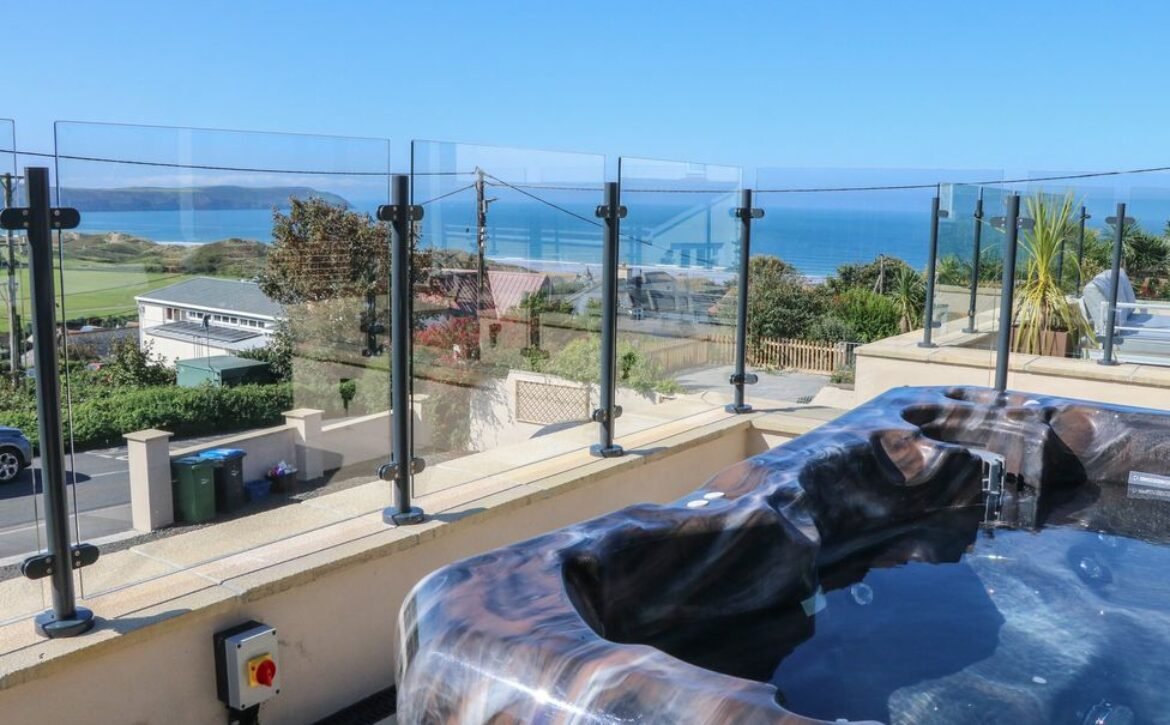 Displaying breath-taking views of the sea, visible from most rooms and the elevated front garden, whilst home to a hot tub, spacious bedrooms, contemporary living areas, and off-road parking, Greenbank welcomes seven guests and one well-behaved dog, perfect for a group seascape.