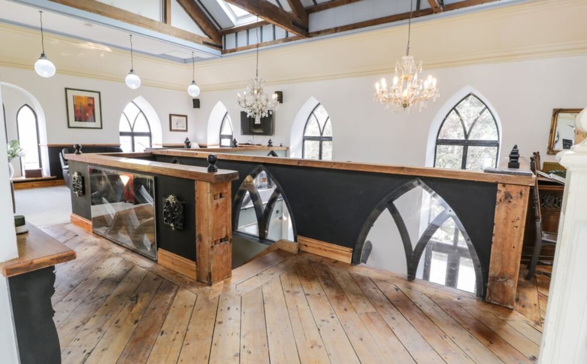 As soon as you walk through the chapel’s original double doors, you’ll be greeted by an impressive and spacious hallway, complete with large chandeliers and grand arched doorways leading off to four light and airy bedrooms.