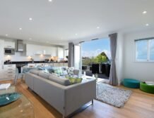 - First-floor open-plan living space with kitchen, dining and sitting area