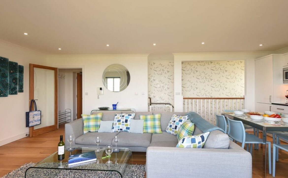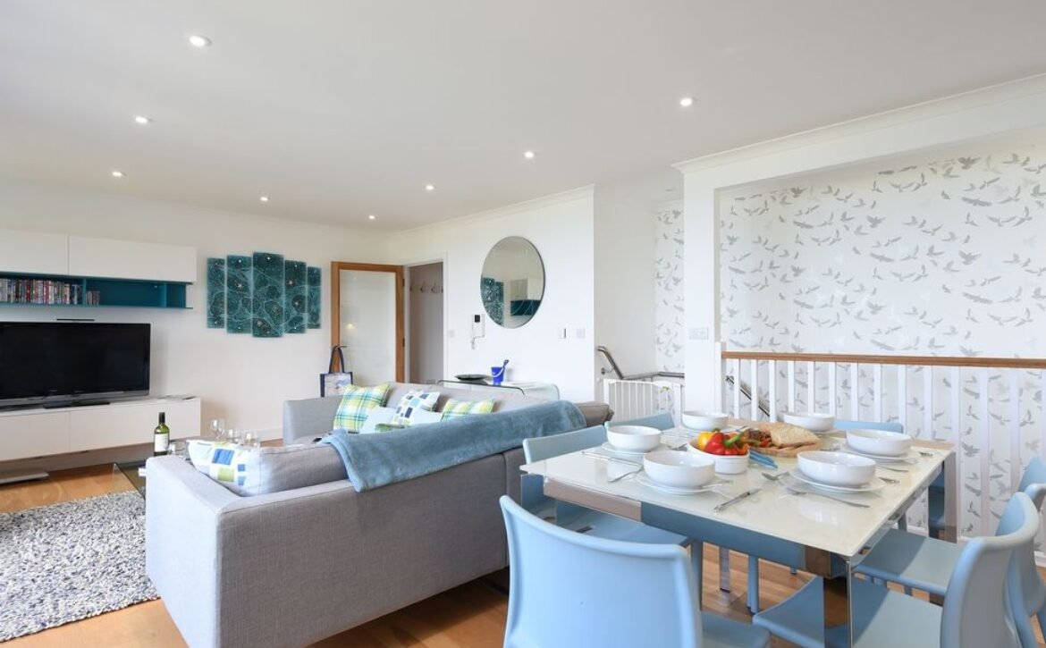 It’s just a short walk from the apartment to Carbis Bay Beach, with its clear blue flag awarded turquoise waters, it’s a wonderful secluded sandy beach ideal for walks or enjoying water sports, from here a network of dramatic cliffside walks let you venture around St Ives and it’s surrounding area, St Ives is a beautiful traditional fishing village, it has a working harbour, glorious sandy beaches and a town lined with cobbled streets full of independent shops, It’s also home to the Tate Gallery and many others as it’s famous for inspiring artist from around the world, after walking you may enjoy the more relaxing scenic railway journey back to Carbis Bay, this also mirrors the coastal paths routes and connects the surrounding area, the views are breath-taking, Further afield, Cornwall’s Eden Project is world famous for its glorious enclosed rainforest, Pendennis Castle in Falmouth is one of many of Cornwall’s historic landmarks, along with St Michaels Mount near Penzance, the jewel in Cornwall’s crown this is a sight not to miss, if you travel from Penzance to Lands’ End treat yourself to a night’s entertainment at the Minack, set in the cliffs it has one of the most dramatic settings for an open air theatre, Halcyon Cove really does tick all the boxes required for a family beach break or a romantic retreat by the Cornish coast.