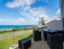 Idyllically set overlooking Carbis Bay, at St Uny apartments, this two bedroom, reverse level, duplex ground floor apartment, enjoys panoramic views, from most rooms and the upper balcony, of one of Cornwall’s most beautiful bays, Carbis Bay, close to the scenic railway, the stunning Carbis Bay Beach and the South West coastal path, it ticks all the boxes for a family holiday or romantic hideaway, offering two outside areas to chill out and relax, a ground floor patio and an upper balcony, inside stylish interiors, along with a clever open plan design, allow guests to enjoy sea views whether dining, cooking or relaxing, via the living area’s floor to ceiling bi-folding patio doors, relax on the comfortable corner sofa in the sitting area, with the binoculars provided, see if you can spot dolphins playing in the surf below, or enjoy the wonderful entertainment on the flatscreen television, with Sky Entertainment package, the dining area is perfectly situated between the living and kitchen area, a designer white frosted glass dining table with six matching chairs are provided, so the whole family can dine together, a contemporary open plan kitchen with black granite work tops, within the living area, is well-appointed, offering all you need for a week’s holiday, both bedrooms are located on the ground floor with access to a seaward facing patio, open the French doors and enjoy breakfast in the Cornish sunshine watching the ocean, or just breathe in the fresh Cornish air, a master king sized bedroom boasts a private en-suite shower room, a second room is fitted with twin beds, which can be joined to make a super king size bed on request, both bedrooms offer plenty of storage space, a family bathroom comprising of a bath with shower over, is conveniently located next to the bedrooms, an idea space to escape and relax amongst the bubbles.