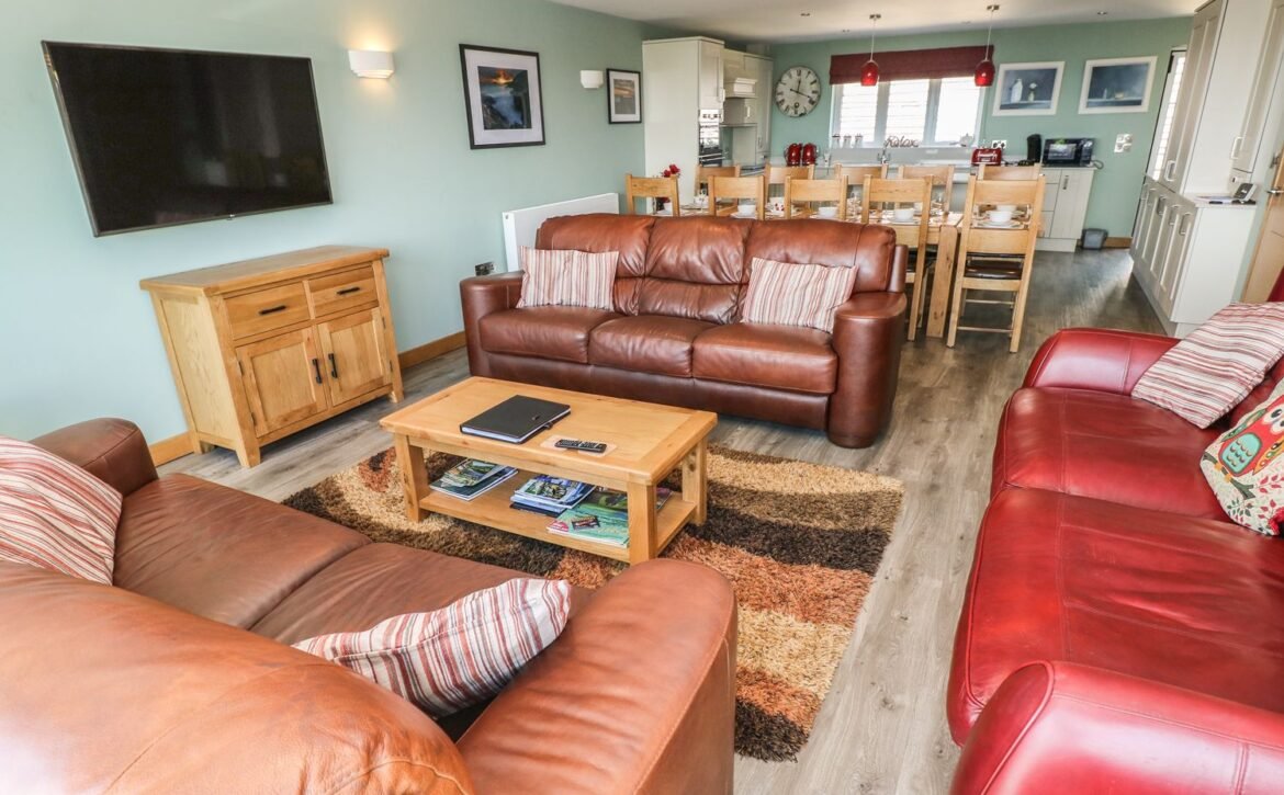 - First-floor open-plan living area with kitchen, dining area and sitting area