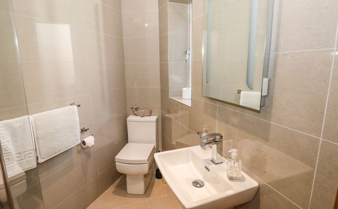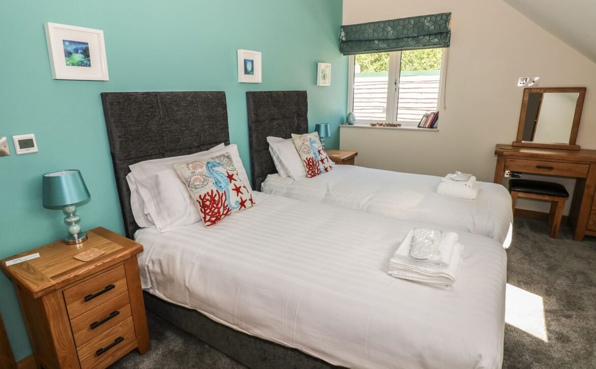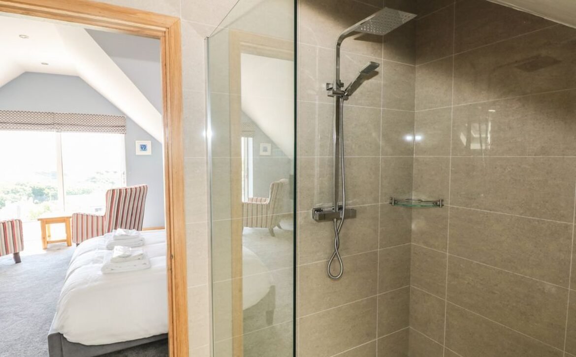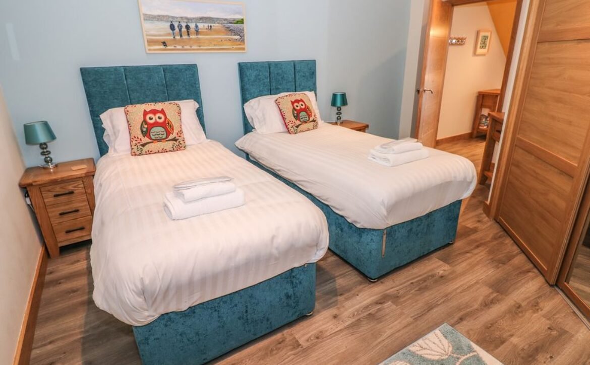 - Five bedrooms: 1 x second-floor super-king-size (zip/link can be twin on request) with Jack-and-Jill access to bathroom, 1 x second-floor king-size with Jack-and-Jill access to bathroom, 2 x ground-floor double with en-suite shower, basin and WC, 1 x ground-floor twin (zip/link can be king-size on request) with en-suite shower, basin and WC