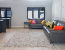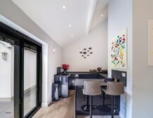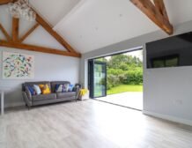 The first of the two cottages is a bright and spacious home with high vaulted ceilings and exposed timbers, feature lighting and tasteful furnishings.