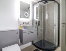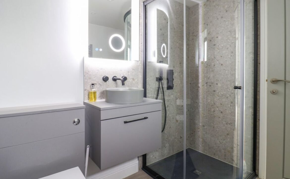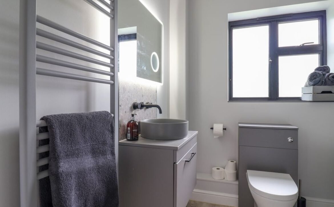 The stylish bathroom has a bath, with a shower over giving you a choice between an evening dip in the tub or a quick steamy rinse.