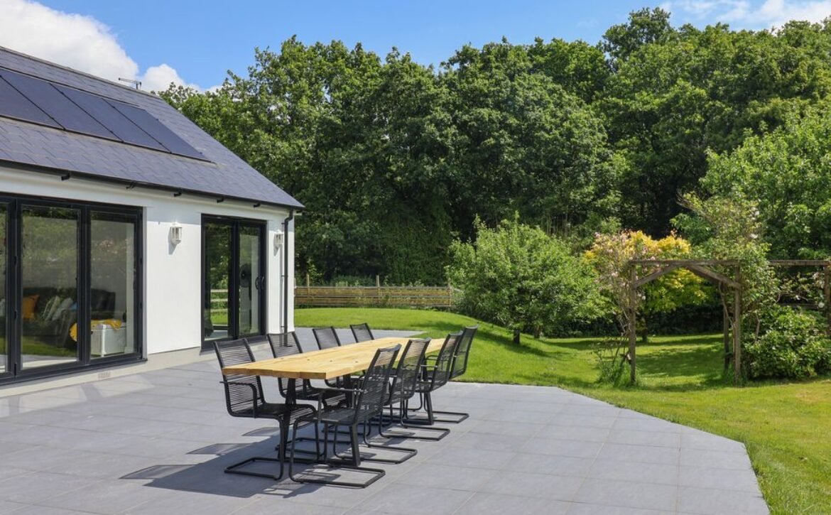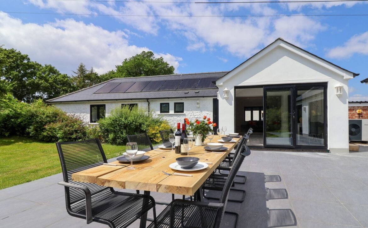 With underfloor heating throughout, the cottages are positioned around an expansive garden and have bi-folding doors which lead out to the sociable patio space, where the large table and chairs create the perfect spot for coming together and enjoying the most tranquil of settings.