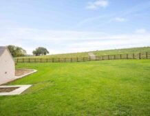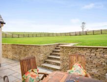 Carry the conversation through the French doors out onto the private patio area to soak in the last of the sun and relish the peaceful surroundings sat at the outdoor seating which overlooks a sizeable raised lawn area, accessed up stone steps offering wonderful countryside views, which guests are welcome to explore comprising of vast green fields and paddocks which make up the owners eight acres of grounds.