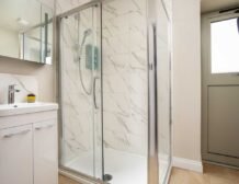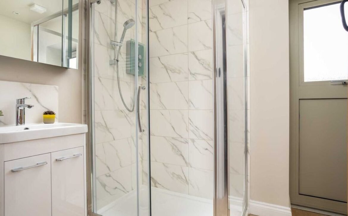 - Three bedrooms: 1 x ground floor king-size with en-suite walk-in shower, basin and WC, 1 x king-size with en-suite rain shower, hand-held shower, basin and WC, 1 x family room with 3 x single beds and en-suite bathroom with bath, rain shower over, basin and WC