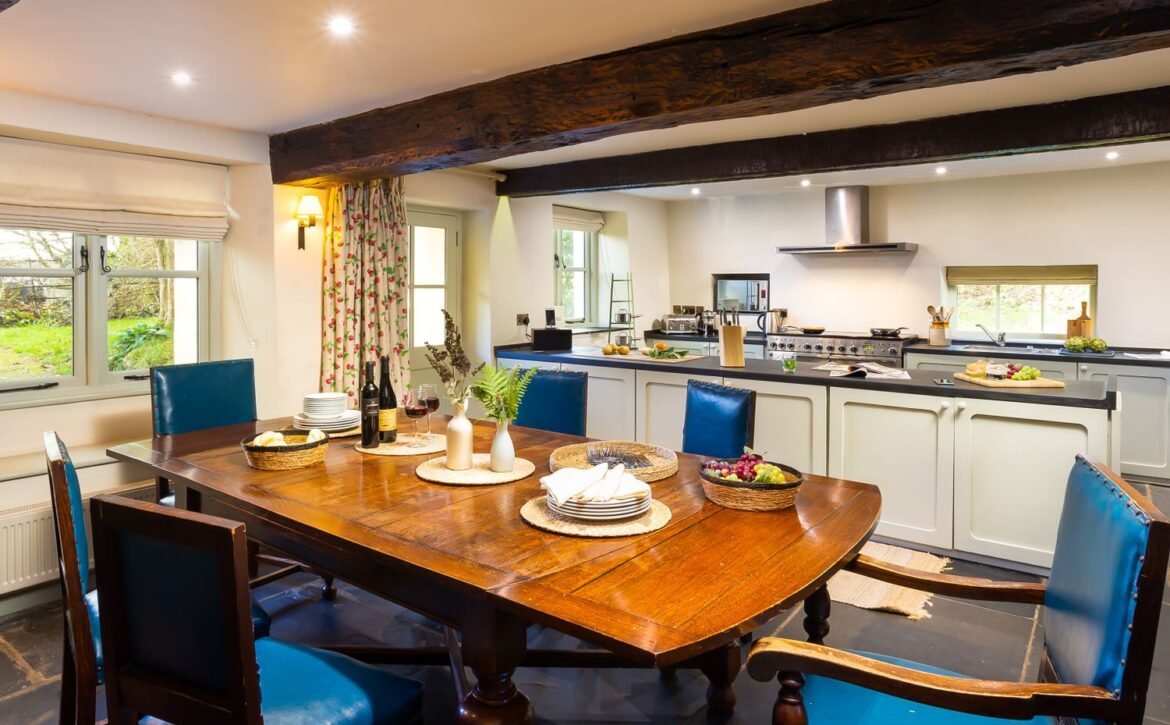 The chef amongst the group will find great pleasure in preparing meals in the farmhouse kitchen, consisting of a series of quality appliances including a large range cooker, fridge/freezer and microwave, while the rest of the group can flick on the woodburner and prepare the dining table.