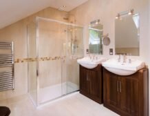 - Three oven range cooker with gas hob, microwave, fridge and freezer, washing machine, tumble dryer, dishwasher, 58″ Smart TV, WiFi