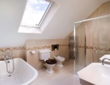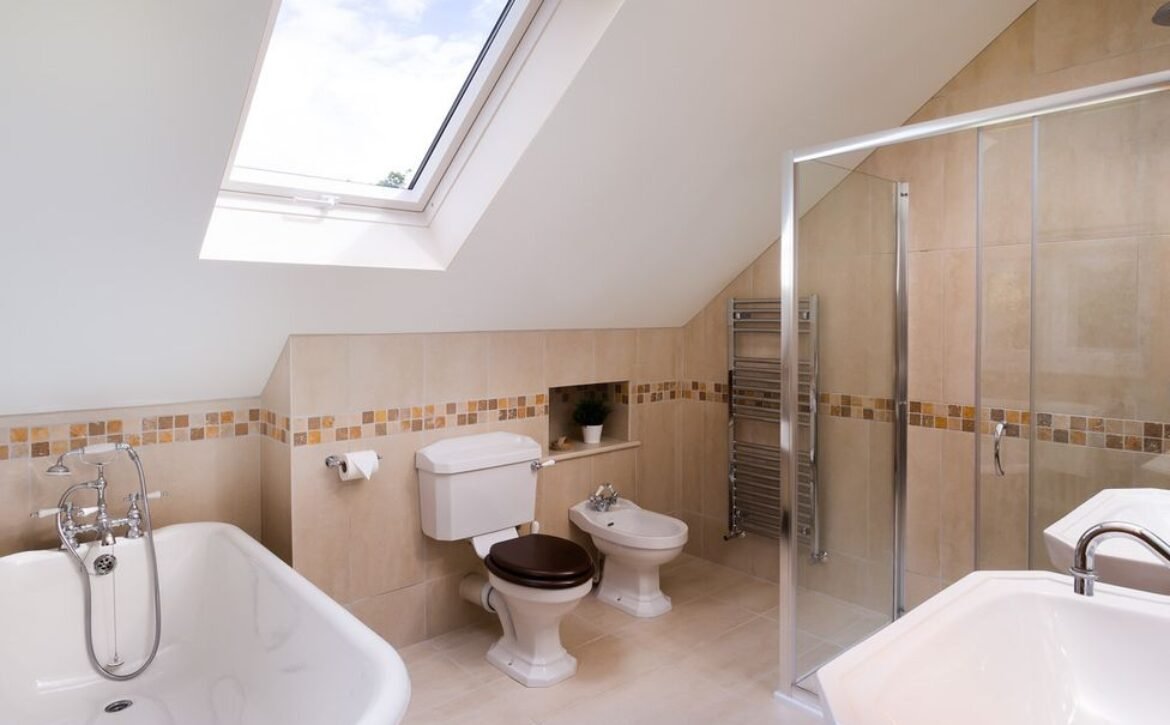 The en-suite here is a large bathroom with a claw foot bath and separate shower.