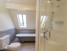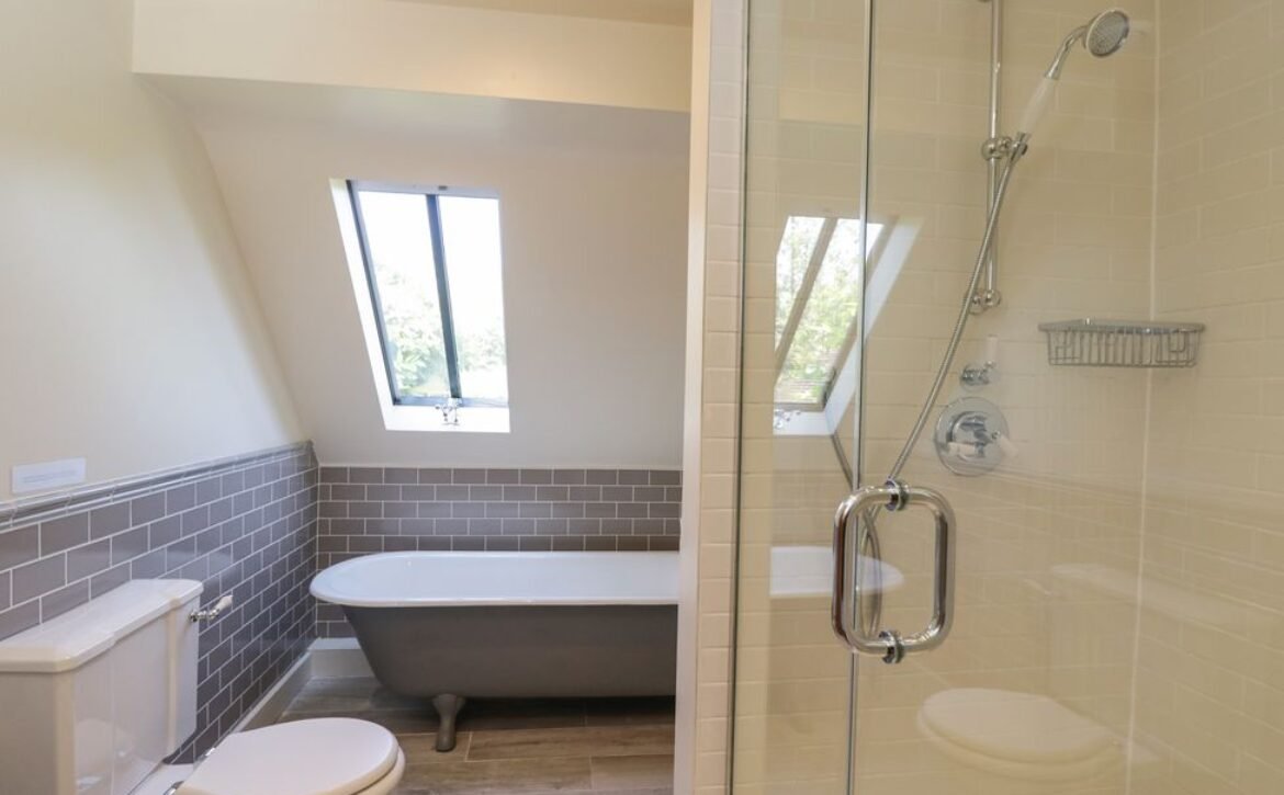 - 1 x first floor super king-size double (zip/link can be twin on request) with en suite roll top bath, walk-in shower, basin and WC, 1 x first floor king-size double with en suite bathroom with bath, shower over, basin and WC, 1 x first floor double, 1 x second floor twin