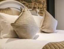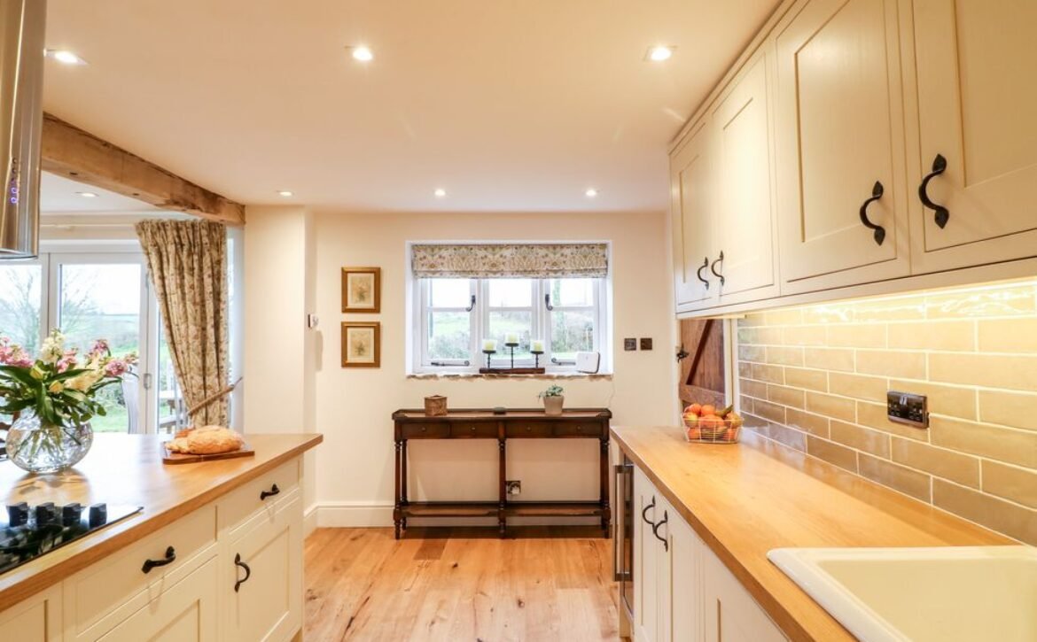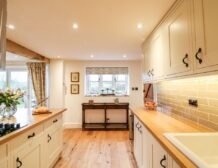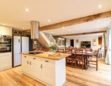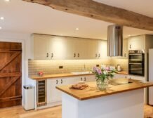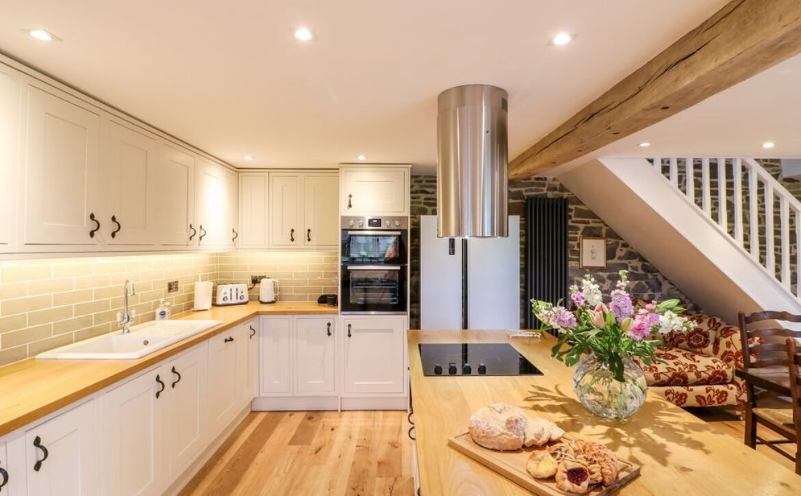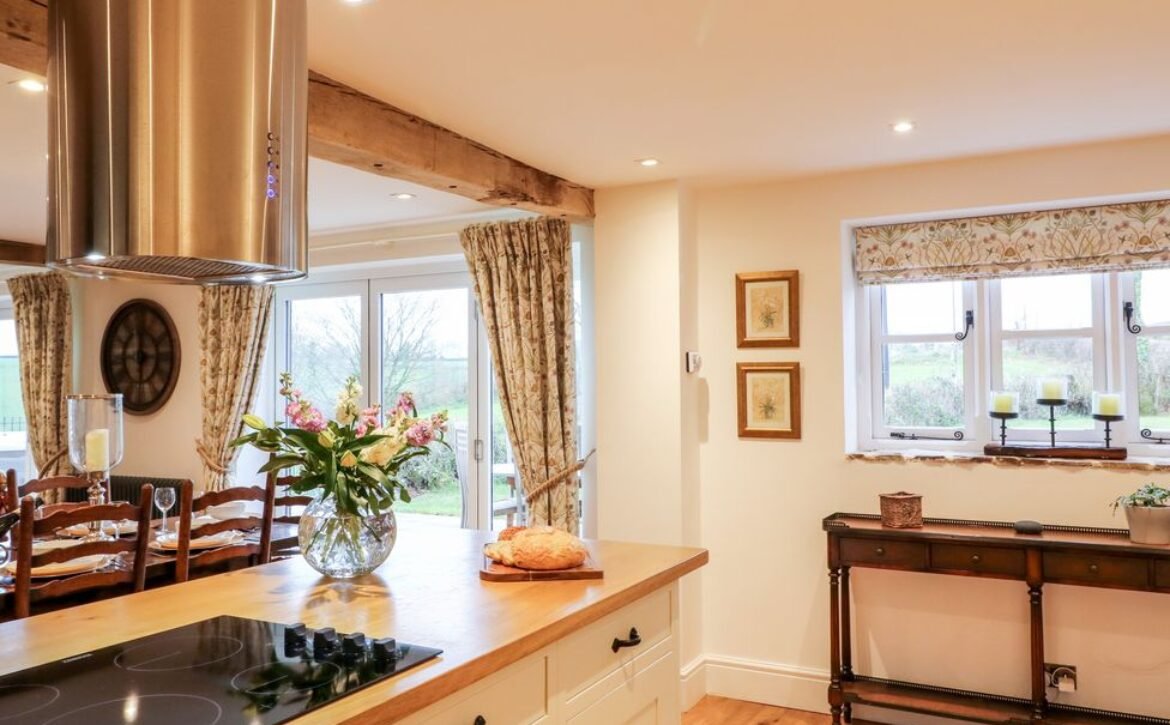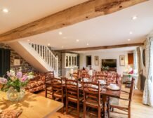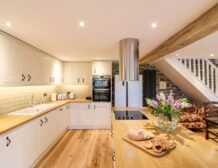 Wooden beams, exposed stone walls and country furnishings make for a unique living space in the heart of the property, where guests can make cooking a joint effort in the spacious, well-equipped kitchen area with a double electric oven and hob, large American fridge-freezer and a dishwasher for a fuss-free clean up; don’t forget to pop your favourite bottles in the wine cooler ready for an after-dinner tipple!