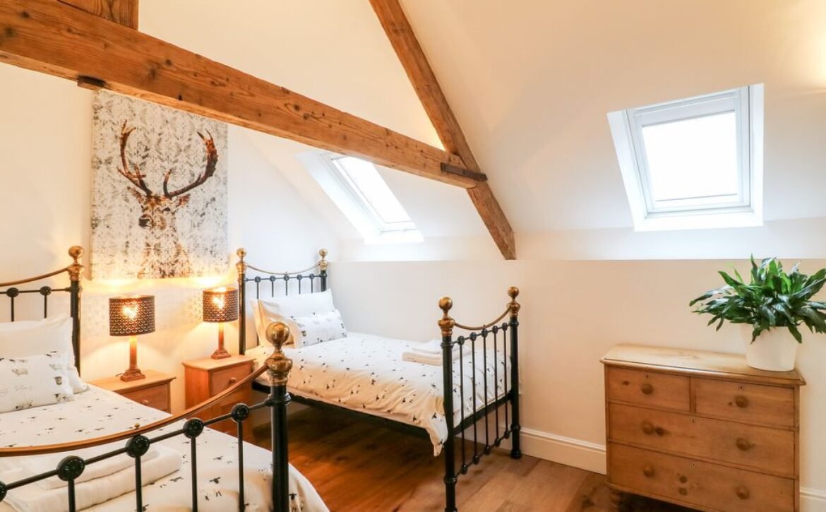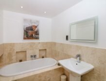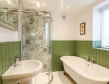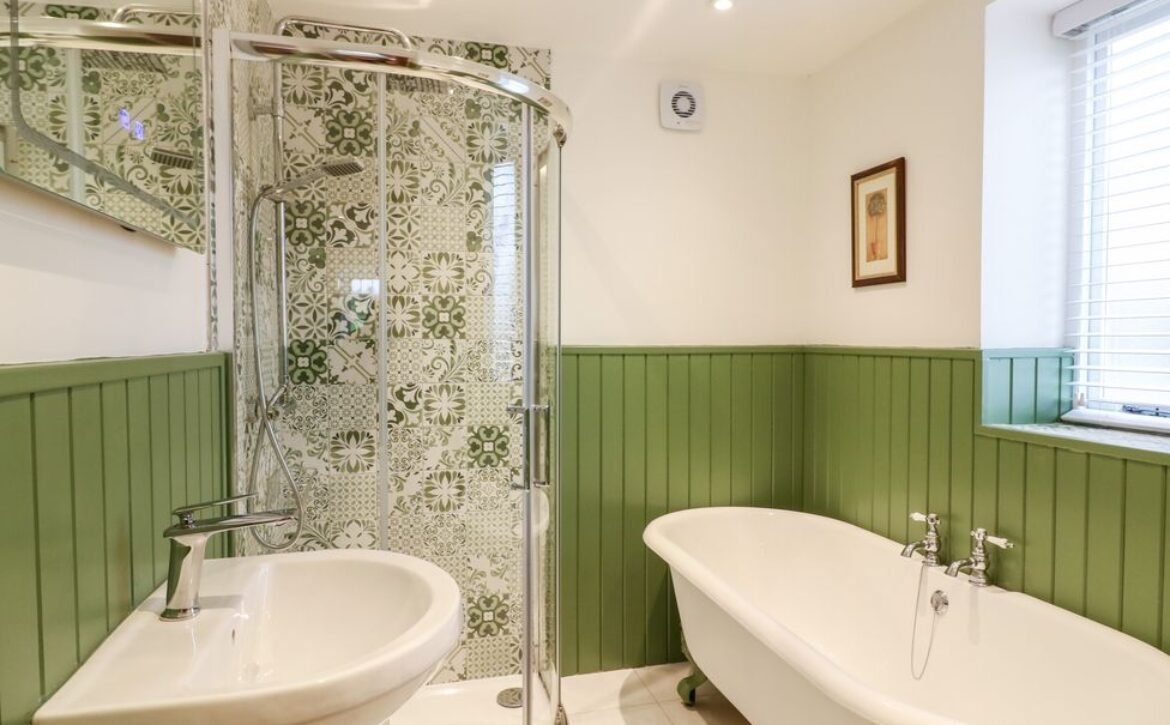 - Four bedrooms: 1 x ground-floor super-king-size with en-suite roll-top bath, walk-in shower, basin, heated towel rail and WC, 1 x king-size with Juliet balcony and en-suite roll-top bath, walk-in shower, basin, heated towel rail and WC, 1 x super-king with en-suite walk-in shower, basin and WC, 1 x twin with en-suite walk-in shower, basin and WC