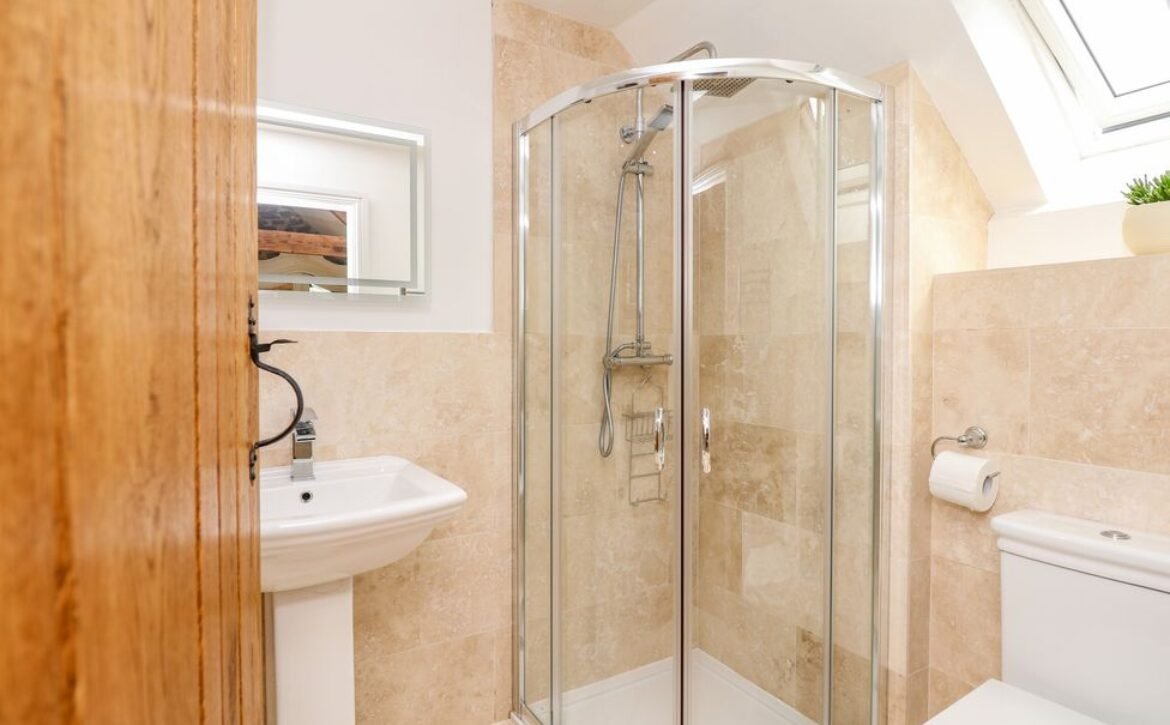 - Ground-floor shower room with walk-in shower, basin and WC