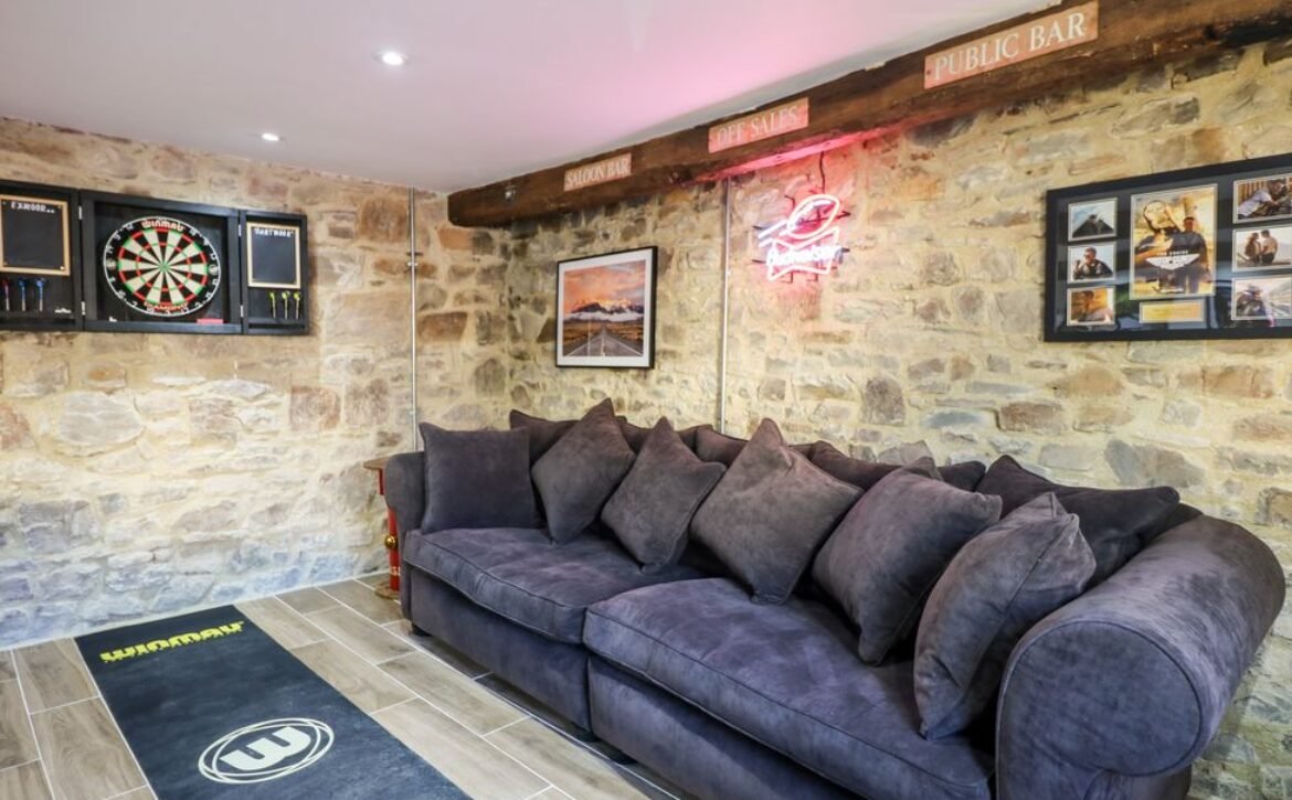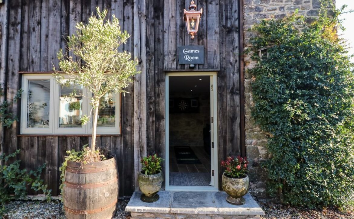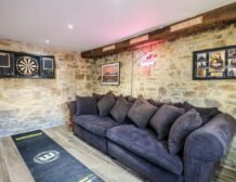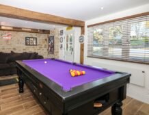 The property welcomes a family or group of eight to celebrate a special occasion in a delightful setting, with an open-plan living space, bedrooms with en-suites and family-friendly amenities including a games room.