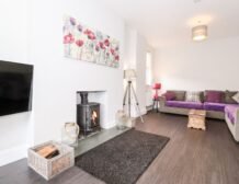 The lounge has tasteful karndene flooring and also brings the warmth and charm of a wood burning stove.
