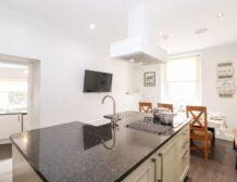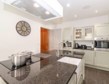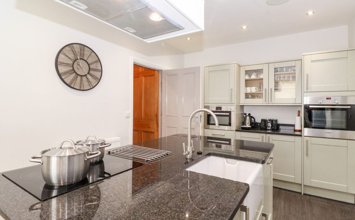 All that perhaps after rustling up something delicious in the luxurious kitchen, with its island, breakfast bar and all equipment needed as well as more entertainment – a wall-mounted smart TV and a music system.