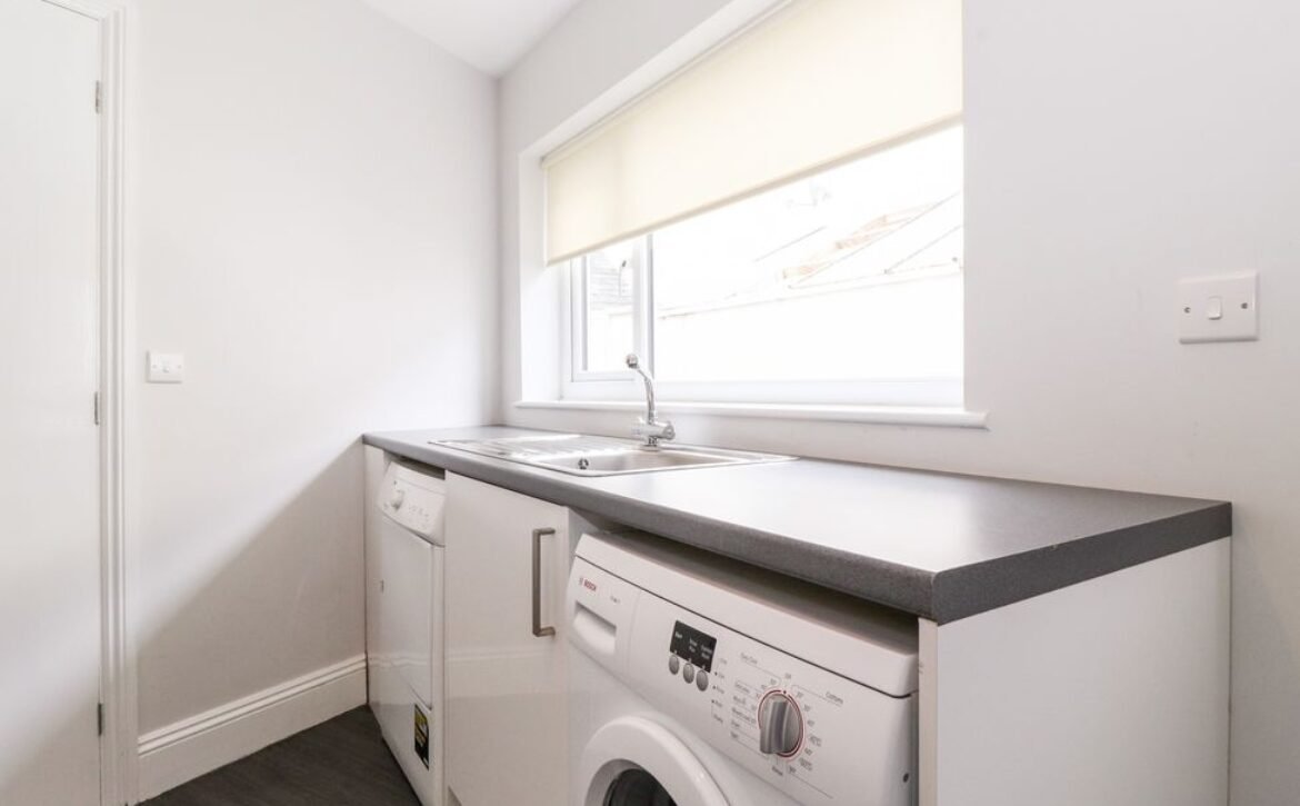 - Utility room houses sink plus washing machine and tumble dryer