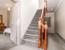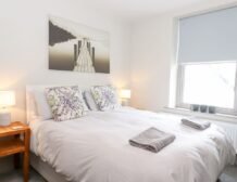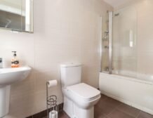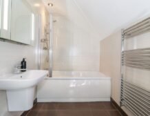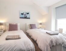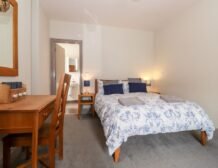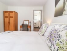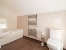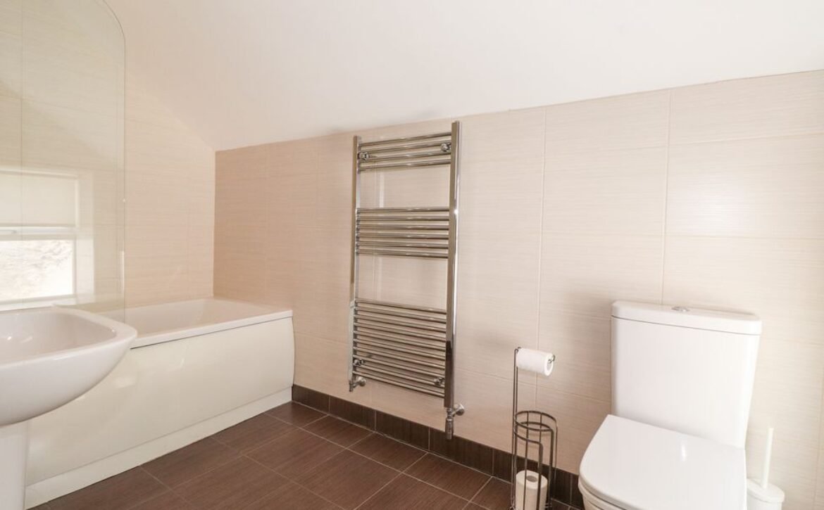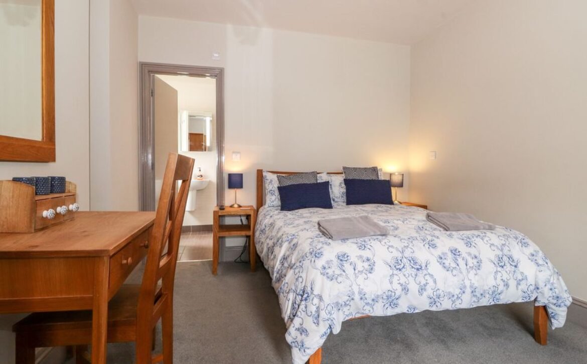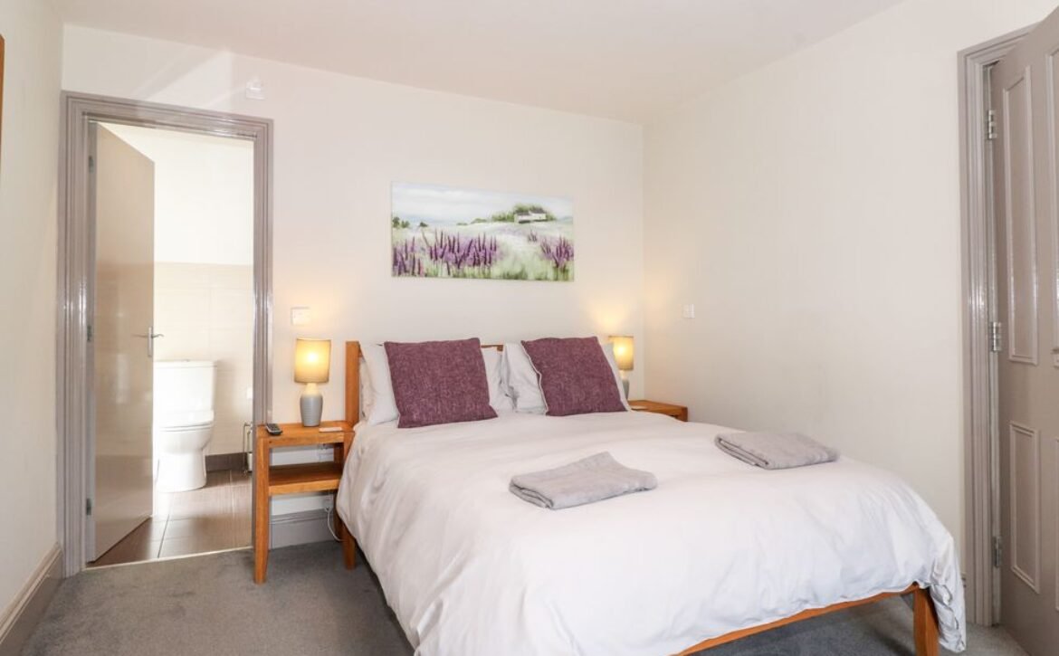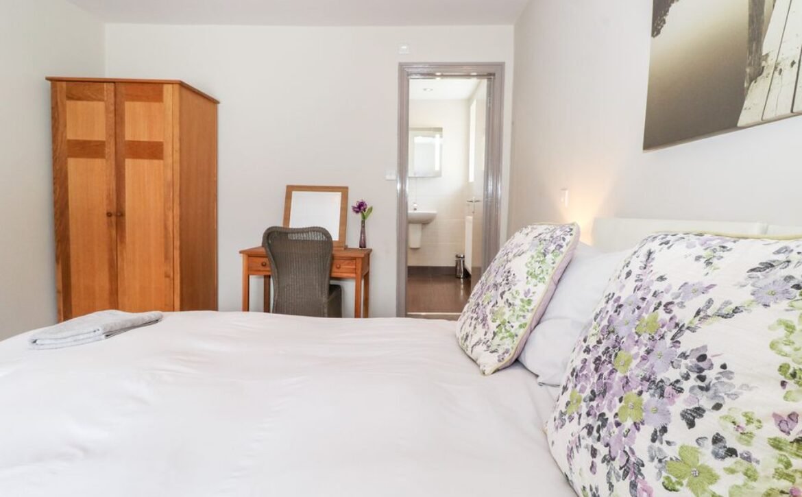 - Two bedrooms on the first floor: 1x double bedroom, en-suite bathroom which also has shower over bath plus basin, WC and a heated towel rail; 1x double bedroom, king-size bed (can be set to twins on request please advise when booking) with en-suite bathroom, shower over bath, basin, WC and heated towel rail