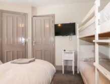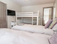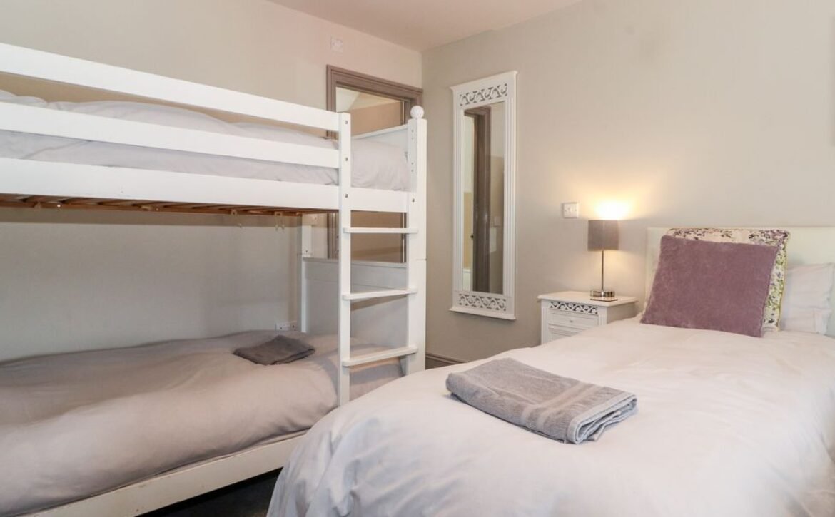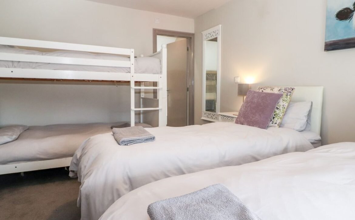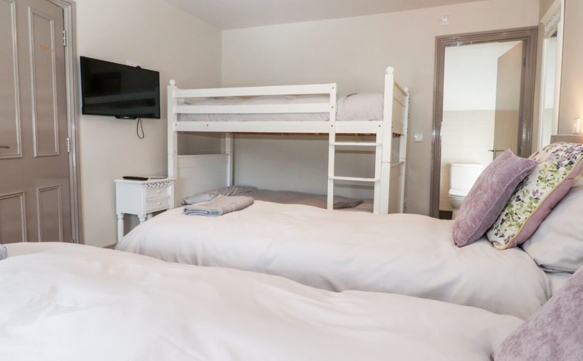 - Two bedrooms on the second floor: 1x double bedroom, en-suite shower over bath, basin and WC plus heated towel rail; 1x family bedroom, twin beds, full-size bunks plus en-suite shower over bath, basin and WC with heated towel rail