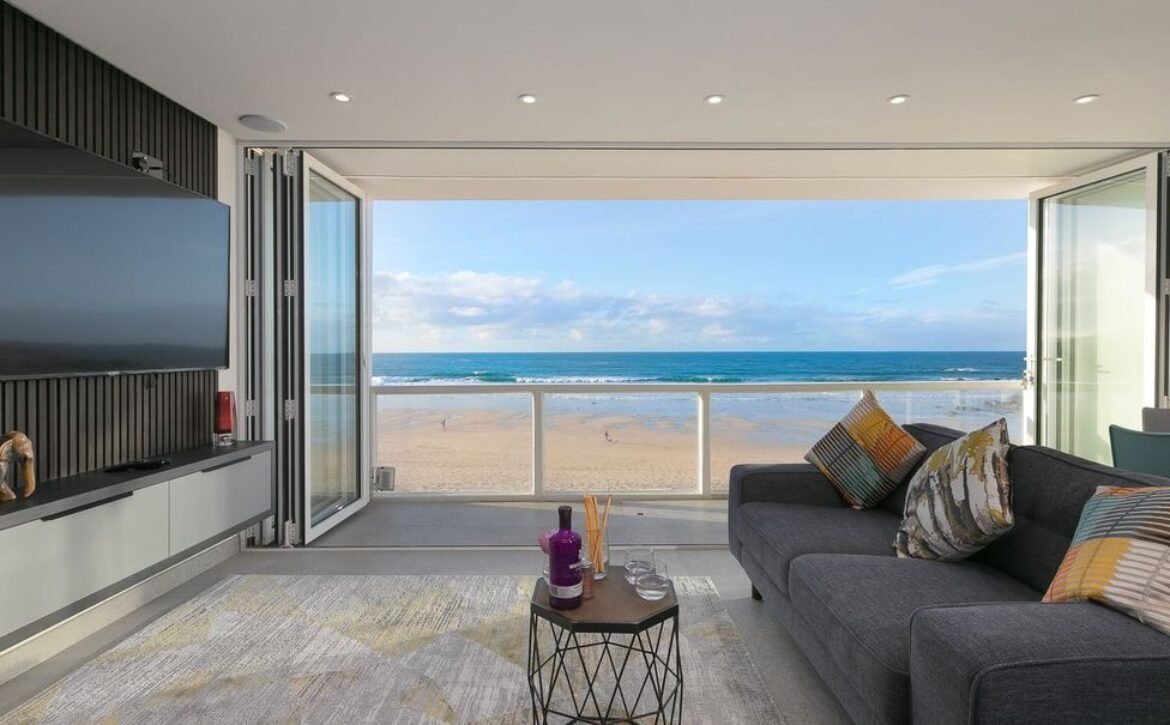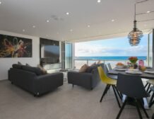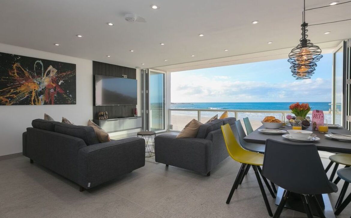 Enter the apartment and head into the open-plan living space and immediately you will be drawn to the stunning beach views.