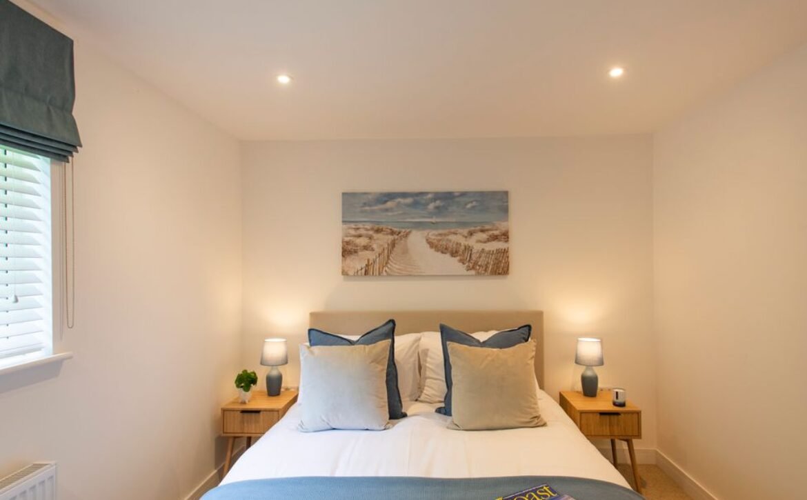 - Two bedrooms: 1 x king-size with Smart TV and en-suite walk-in shower, basin, heated towel rail, and WC, 1 x double with Smart TV