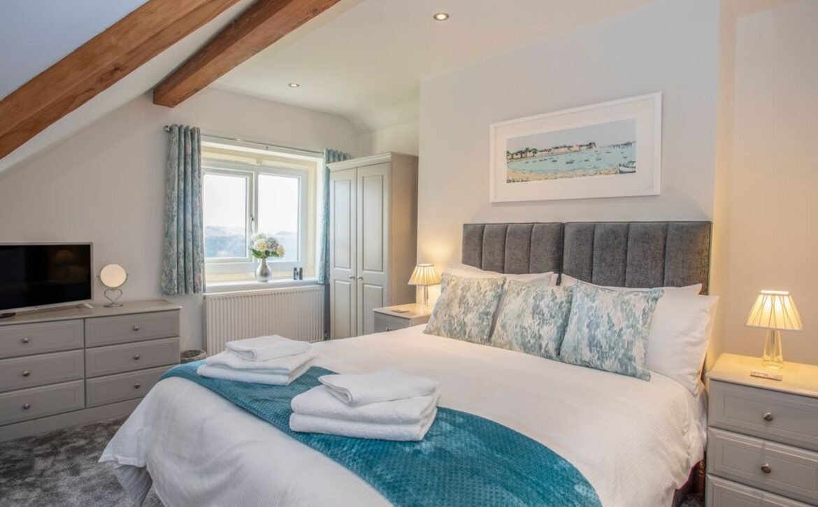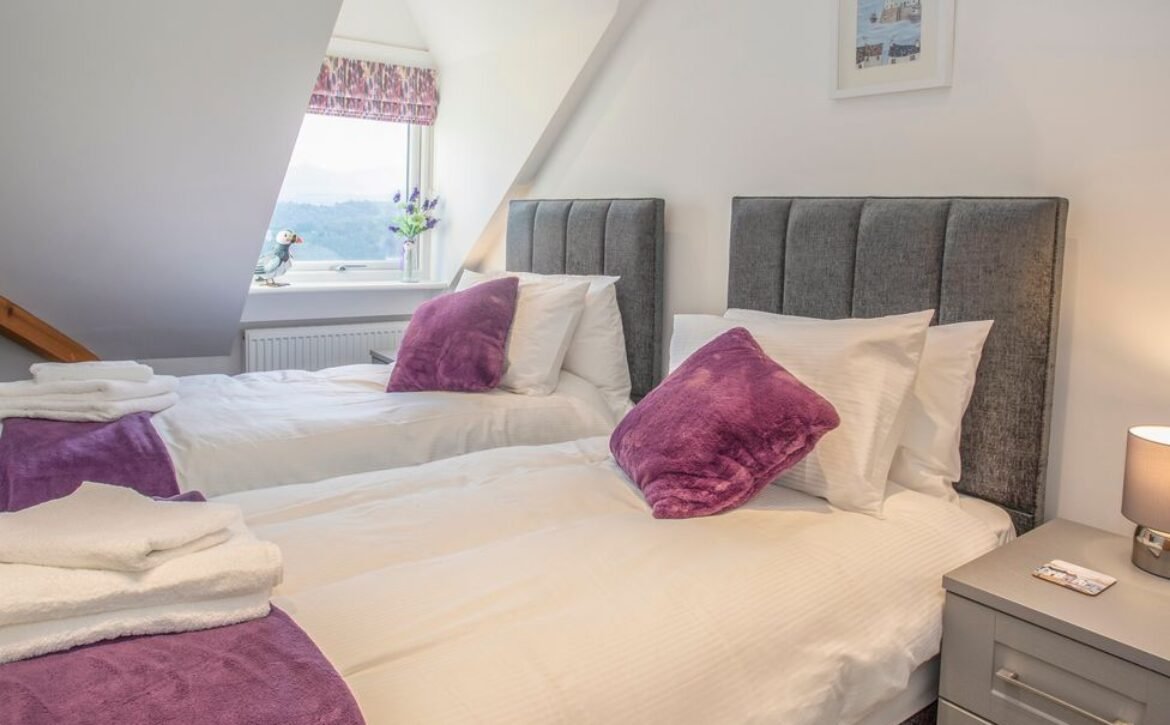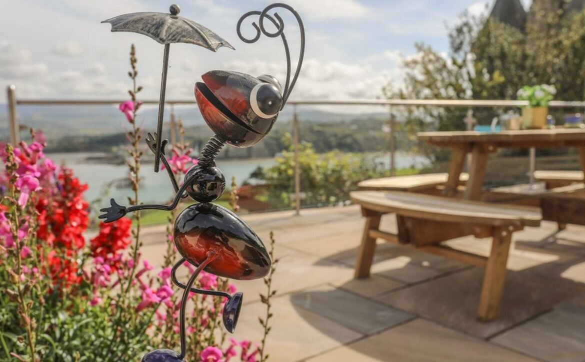 The twin room has two single beds and a TV. There is a further wet room with multi-function shower, stand alone bath, loo and wash hand basin. In addition to the communal gardens Nyth Y Fran had its very own relaxing private garden overlooking the Menai Straits and mountains, created for the sole use of guests.