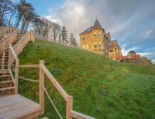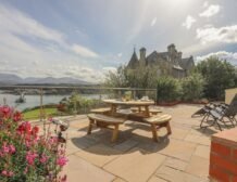 A handy cool box with ice packs, BBQ tools and a picnic set are stored in the apartment’s kitchen. The rolling lawns of the extensive grounds include a small orchard, pond and patio areas.
