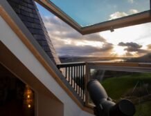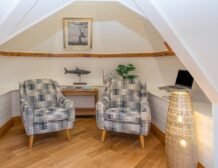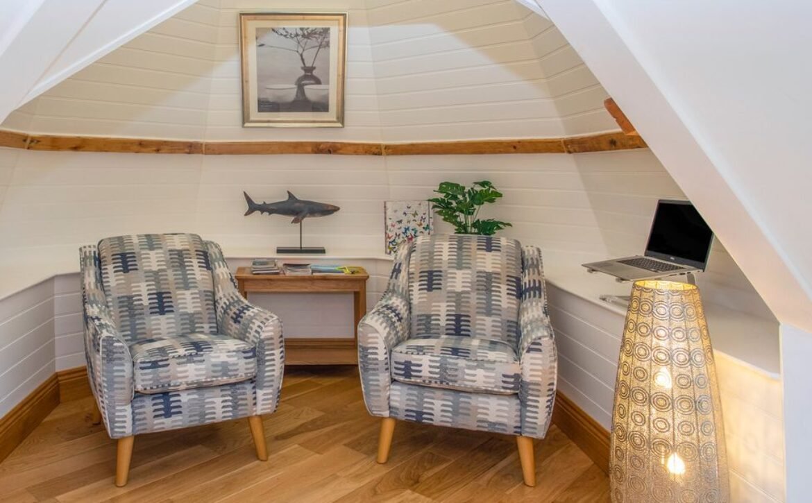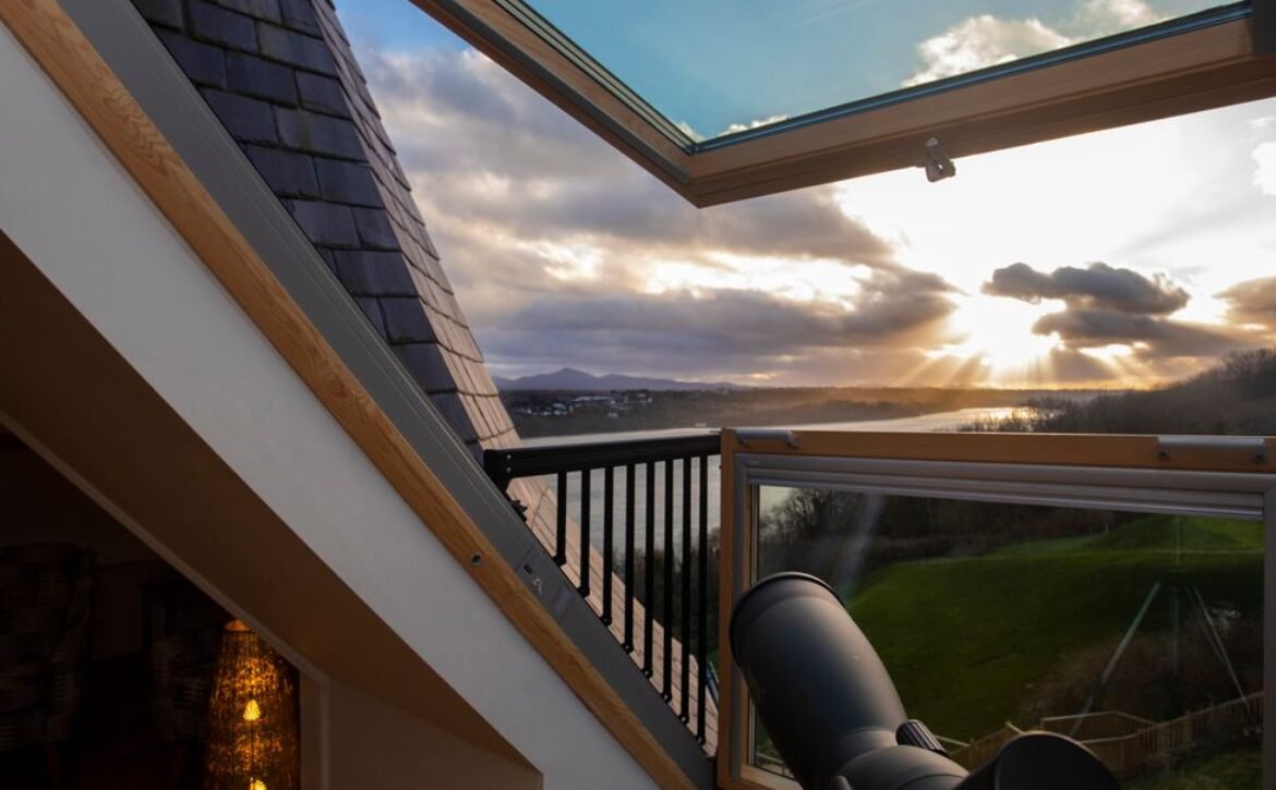 We especially love the clever Velux balcony with fantastic views to Mount Snowdon and the Britannia suspension bridge. The main seating area has comfortable sofas and chairs, a Smart TV and telescope.