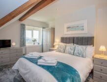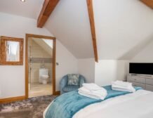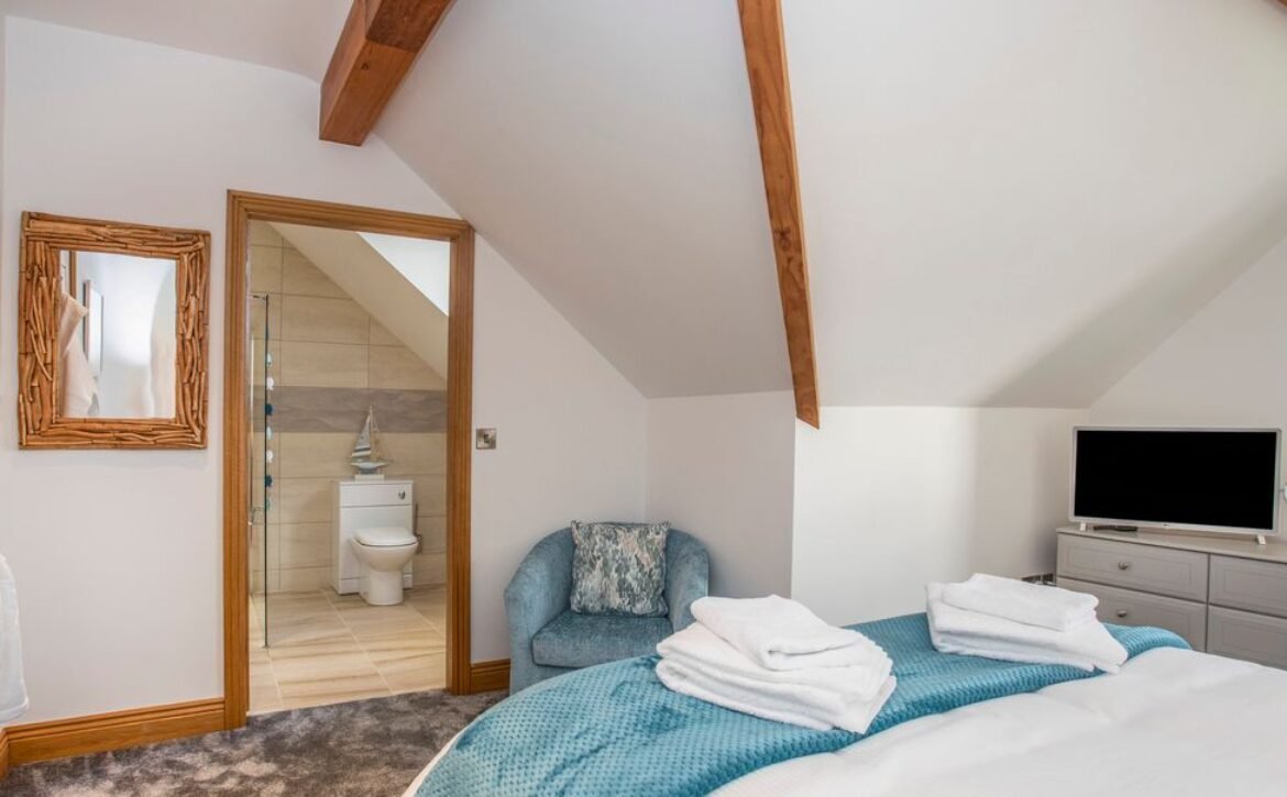 The master room has a king size bed, TV and ensuite with a wet room with multi-function shower, loo and wash hand basin.