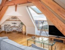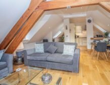 There is allocated parking for two cars. Please note that within the penthouse apartment there are areas with low headroom so please be mindful if you are very tall. This apartment has been decorated and furnished to the highest standard and provides a special feeling of peace and tranquillity.