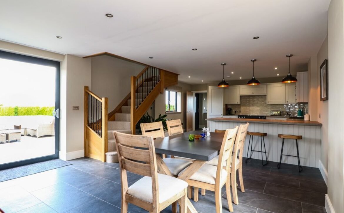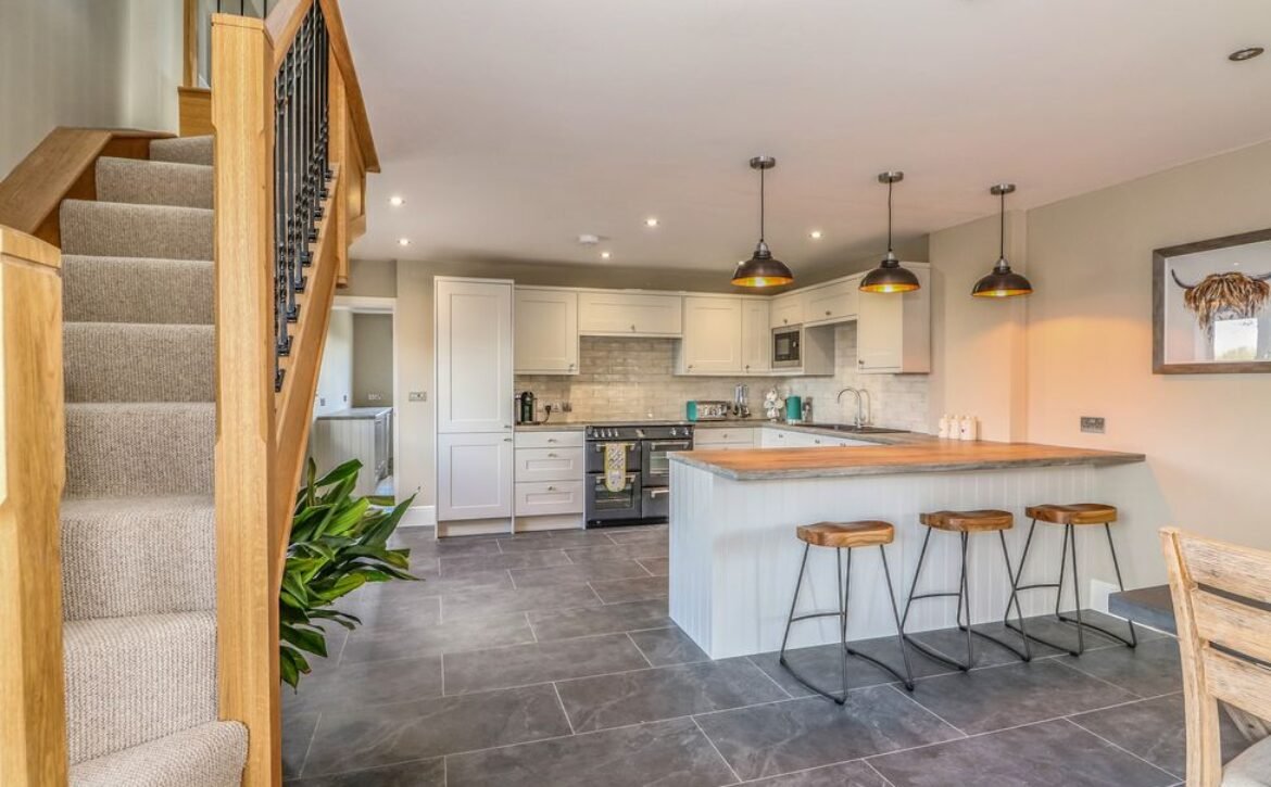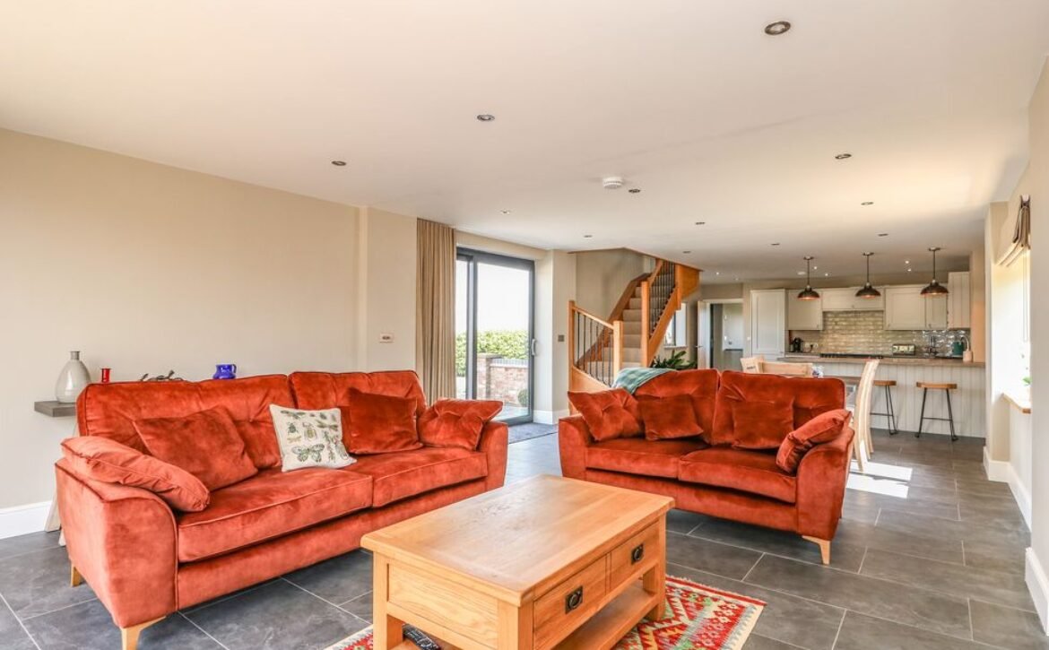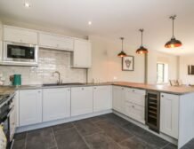 Stepping inside, the large open-plan living area will become the social hub of the house; sit at the breakfast bar as the chef of the group gets to terms in the ultramodern kitchen, hosting striking appliances such as the electric range cooker and induction hob, amongst ample storage and worktop space, it is sure to inspire some home-cooking.