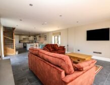 - Open-plan living space with kitchen, dining and sitting area
