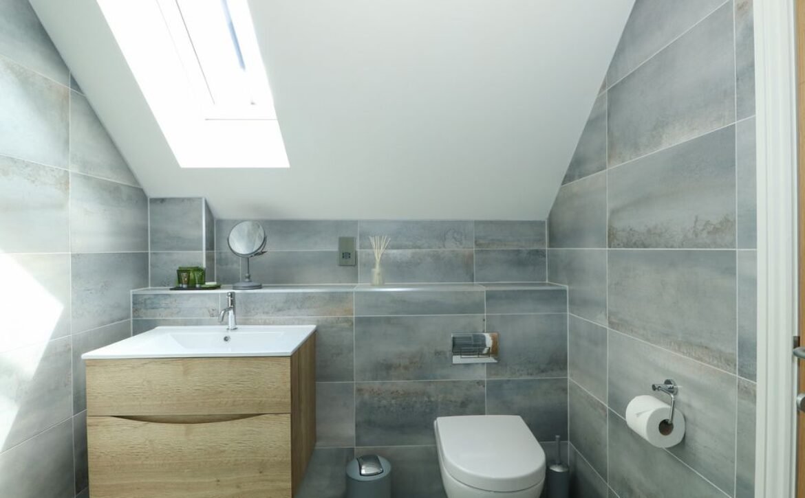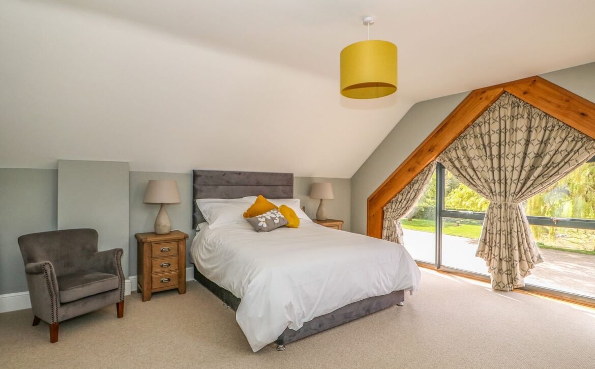 The upstairs continues to impress, hosting two beautiful bedrooms; the master includes a king-size bed, dressing table, built-in wardrobes and a beautiful gable window which offers a view of the picturesque willow tree, as well as a stunning en-suite shower room with sleek tiling.