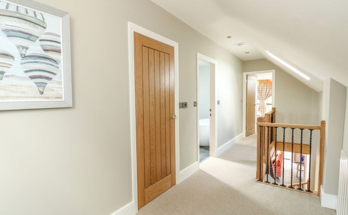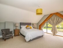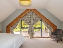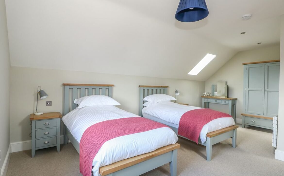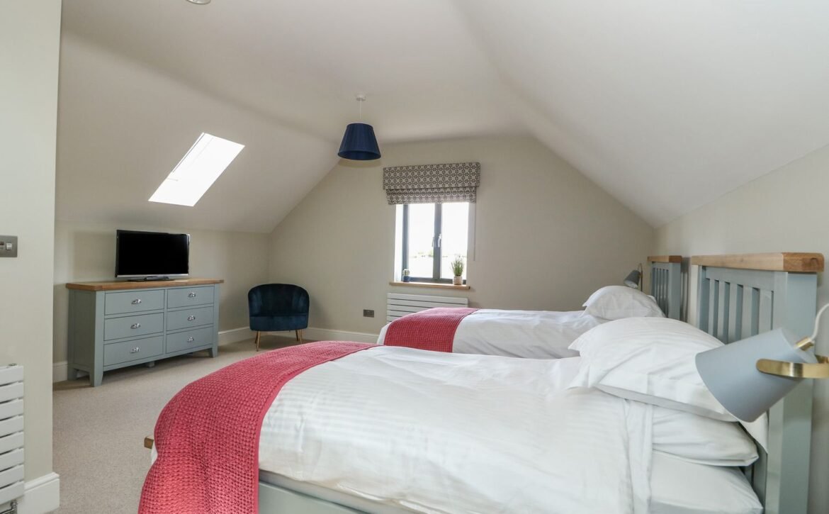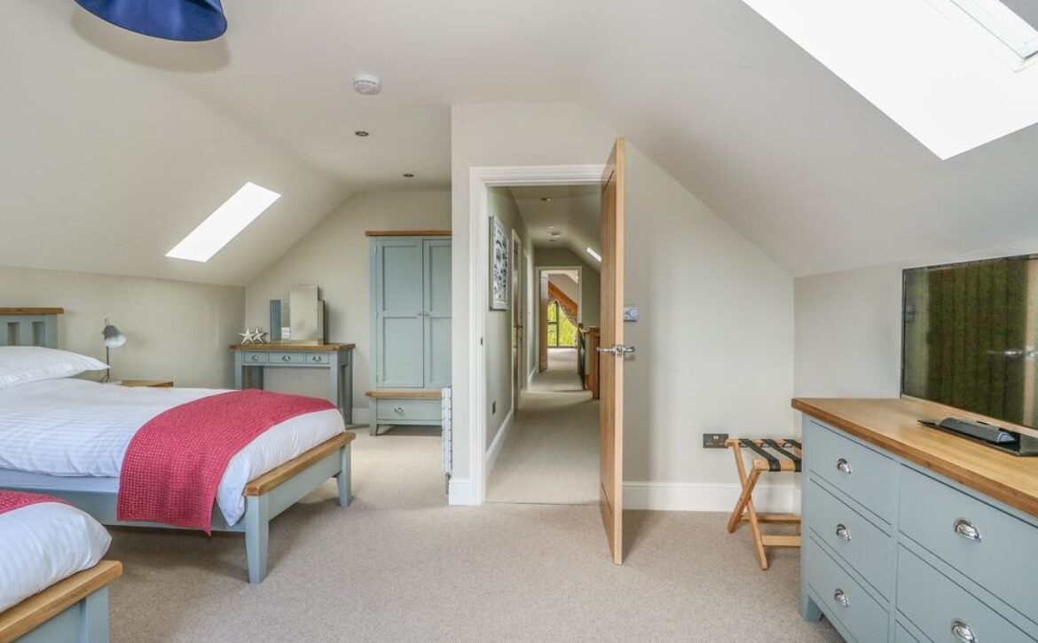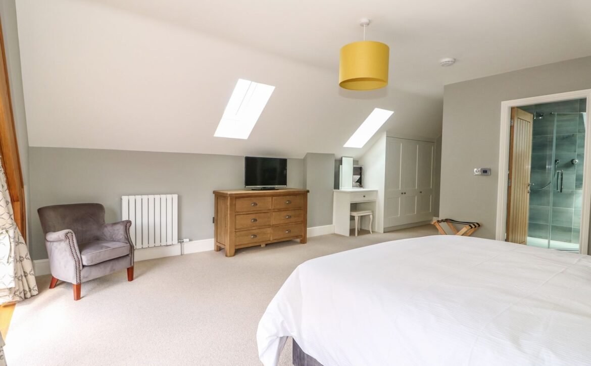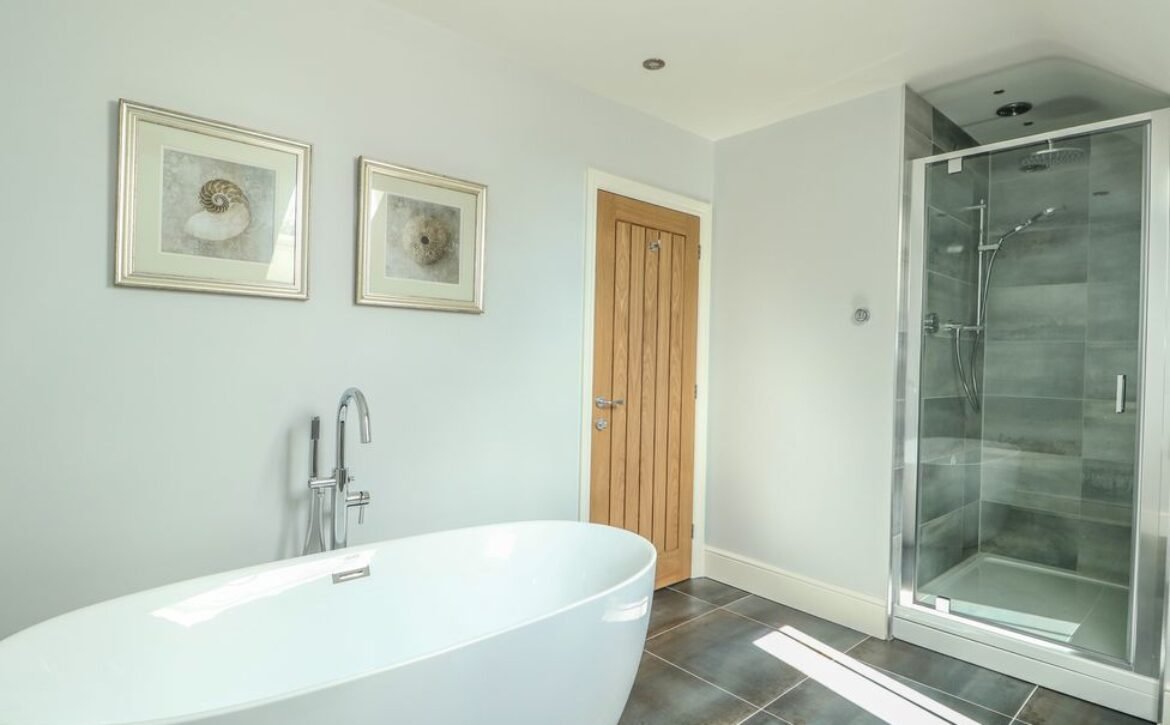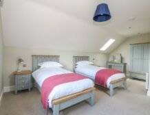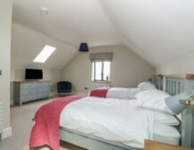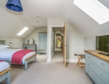 At the other end rests a charming twin room which overlooks the surrounding farmland, served by a gorgeous family bathroom with freestanding bath and walk-in shower enclosure, so you can decide how best to prepare for the day.