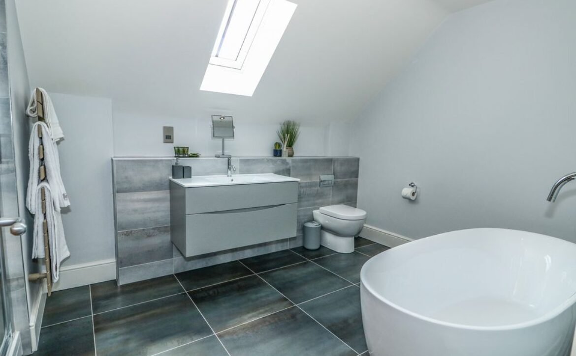 - Bathroom with freestanding bath, walk-in shower, heated towel rail and WC