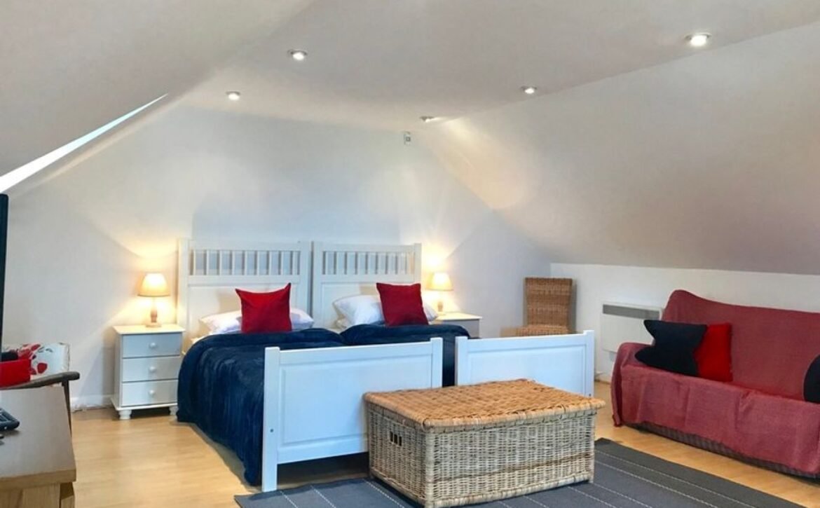 - 1 x first floor super king-size double with en-suite bath,shower over, basin and WC, 1 x first floor twin, 1 x first floor bunk beds x 2, 1 x lower ground floor king-size double, 1 x lower ground floor double