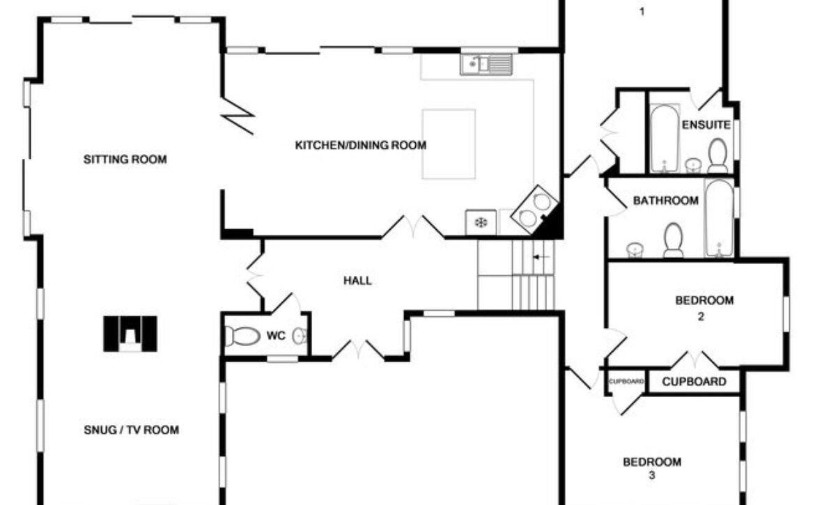 - Open plan living area with kitchen, dining area, sitting area and snug