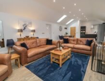 After dinner, retreat to the plush leather sofas and relax in front of the Smart TV, whilst your pooches take up their favourite spot in front of the crackling woodburning stove.