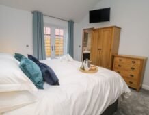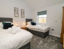 - Three bedrooms: 1 x super-king-size with Smart TV and en-suite shower, basin and WC, 1 x super-king-size with Smart TV and en-suite walk-in shower, basin and WC, 1 x twin (zip/link, can be double on request) with Smart TV and en-suite walk-in shower, basin and WC