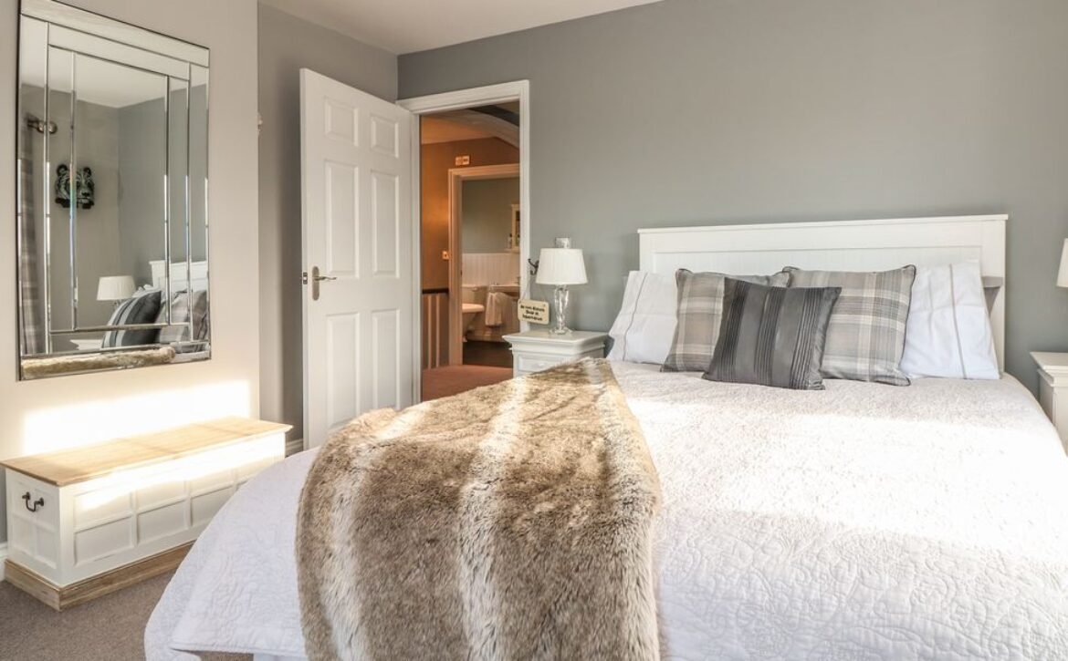 A restful night’s sleep awaits you in each of the three beautiful bedrooms upstairs, boasting views of green pastures.