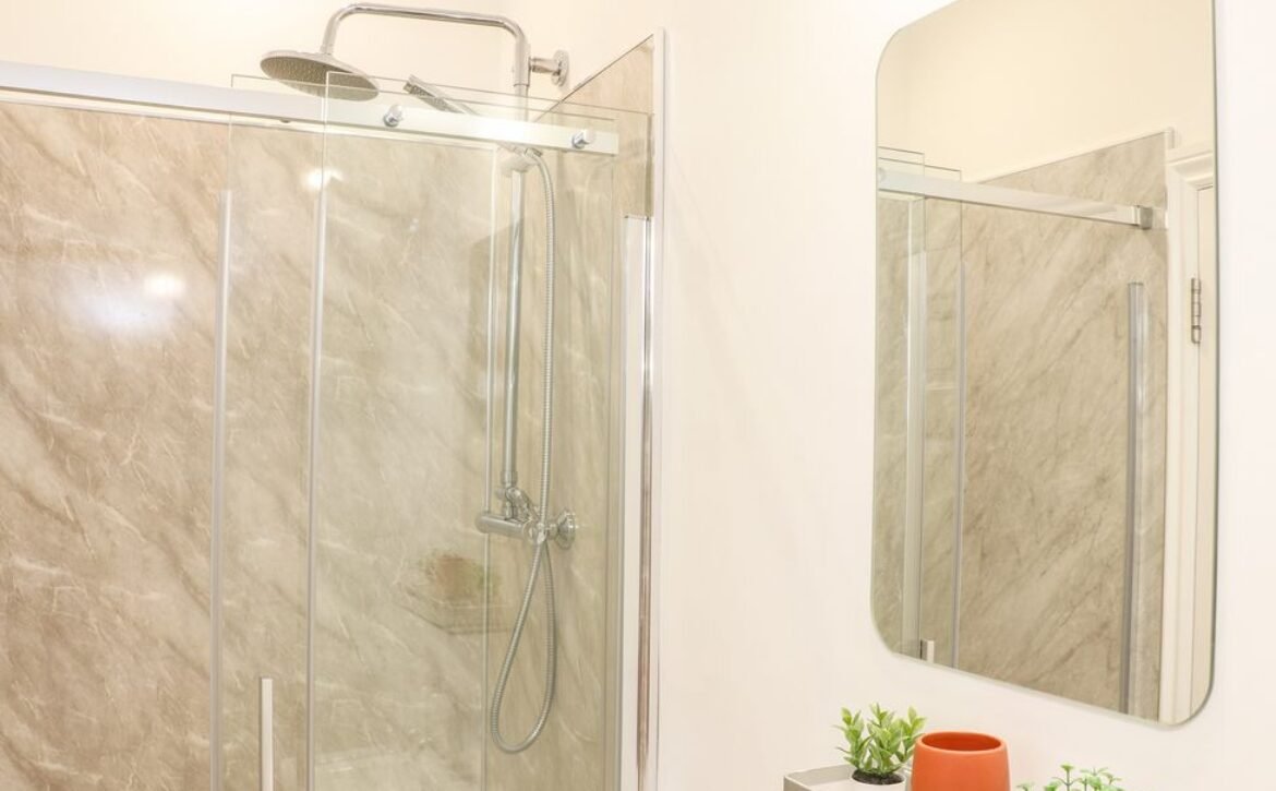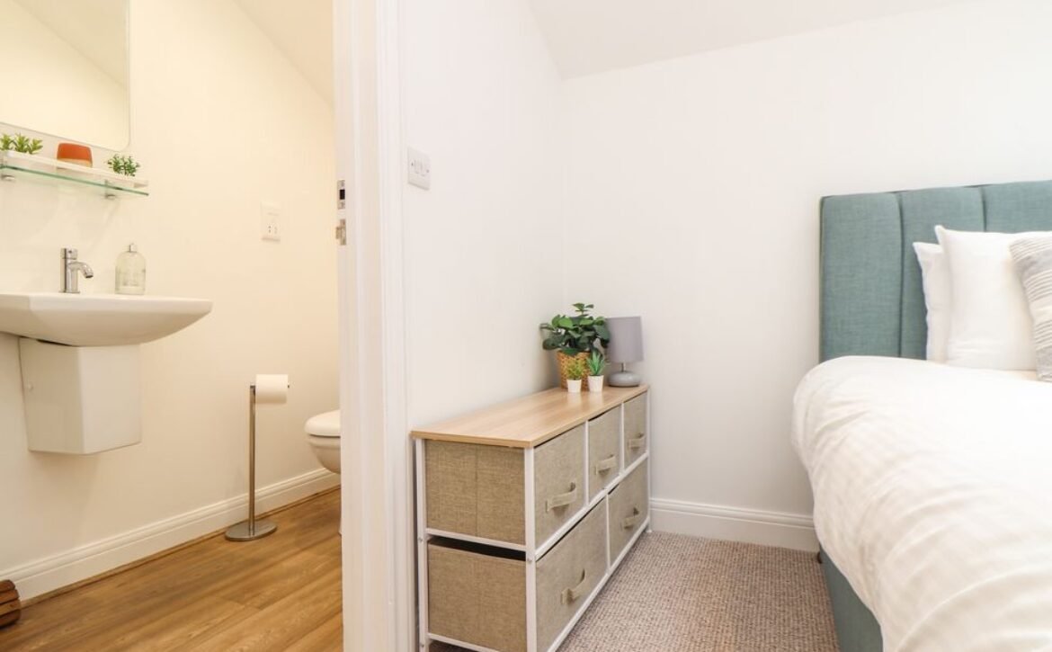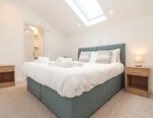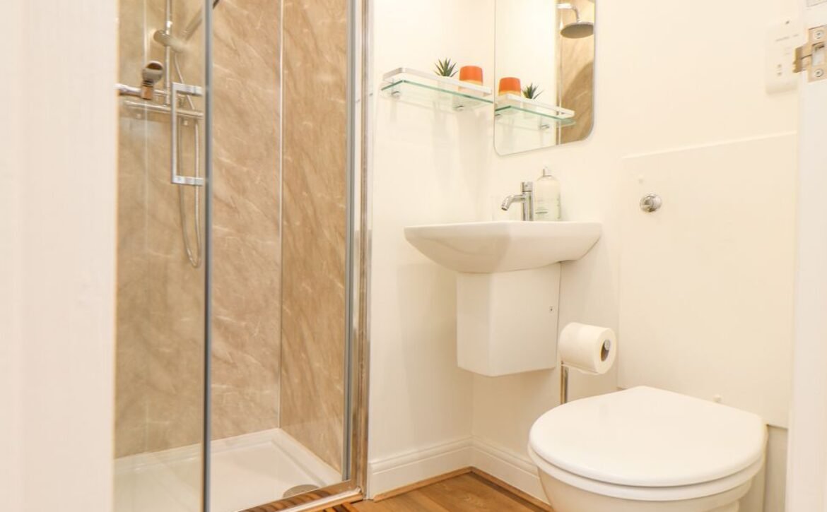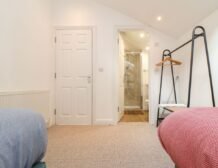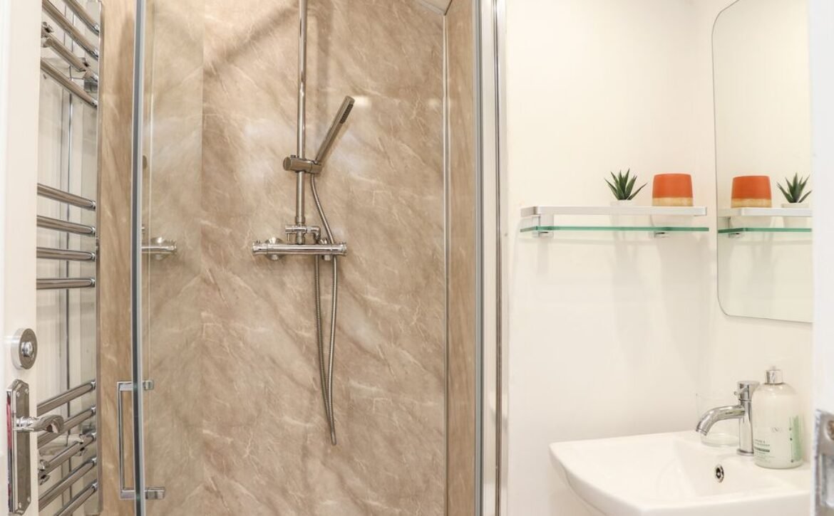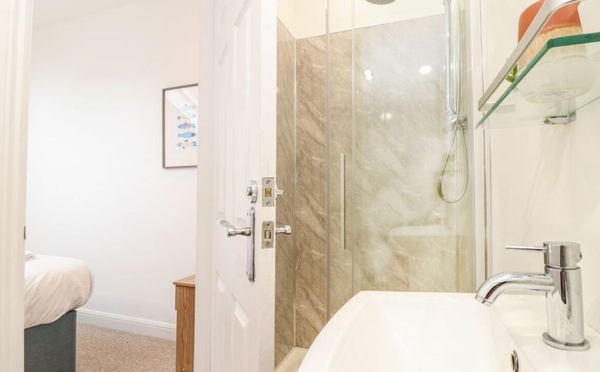 - Two bedrooms: 1 x super-king (zip/link, can be twin on request) with en-suite walk-in shower, basin, and WC, 1 x twin (zip/link, can be super-king on request) with en-suite walk-in shower, basin, heated towel rail, and WC
