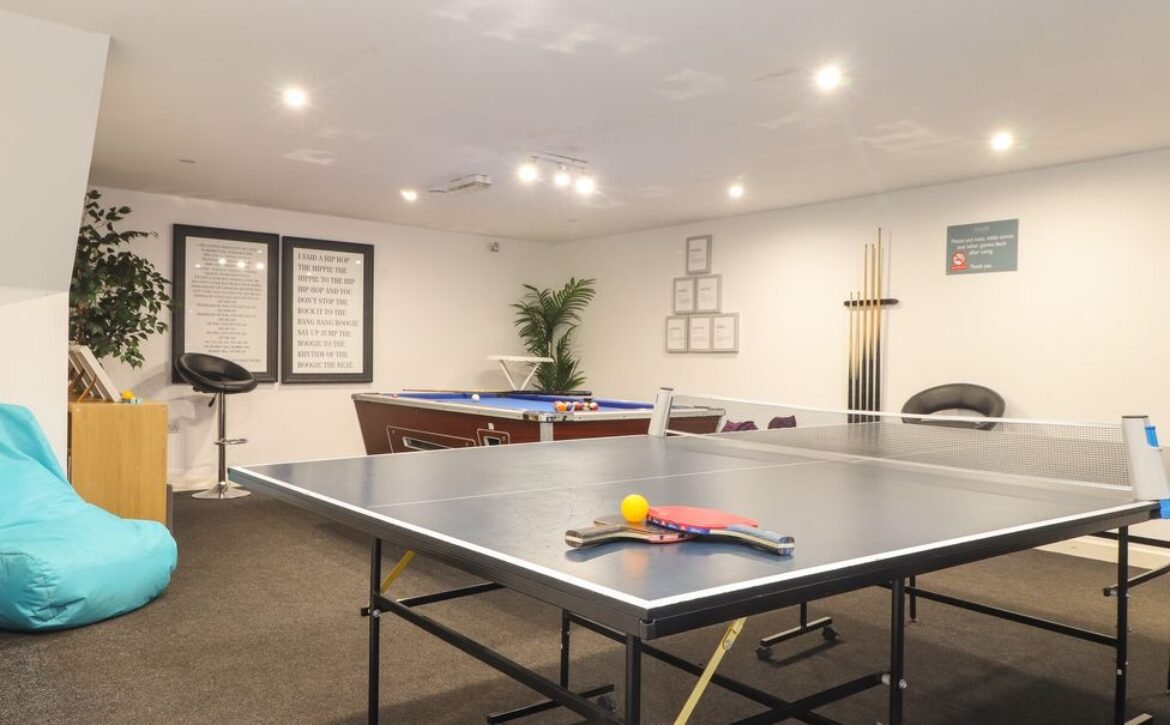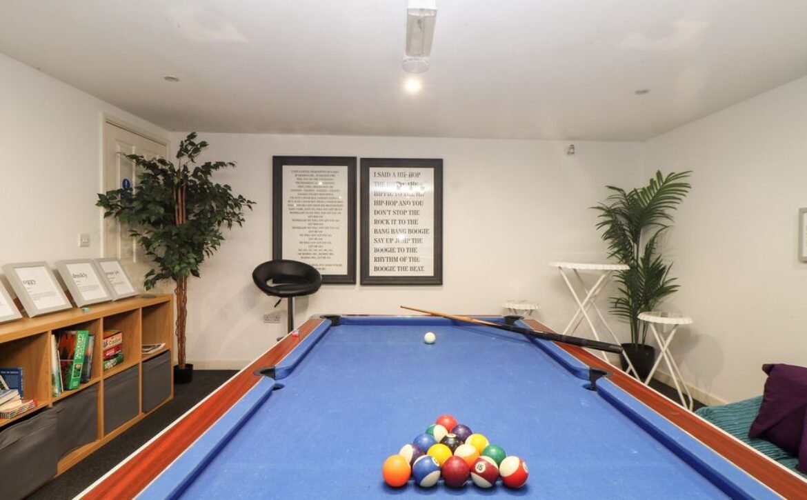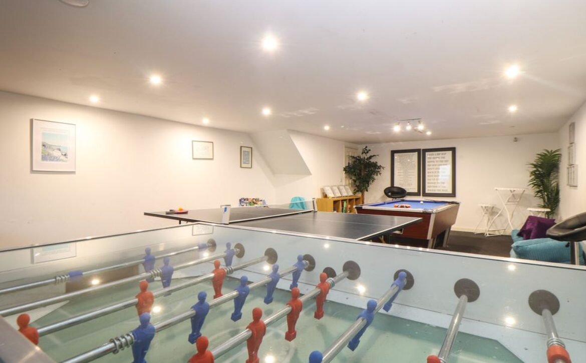 After a day by the pool, enter the open-plan living space, where you can relax in front of the Smart TV, prepare meals, dine as a four, and enjoy a competitive night of games.