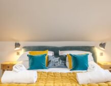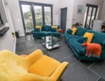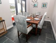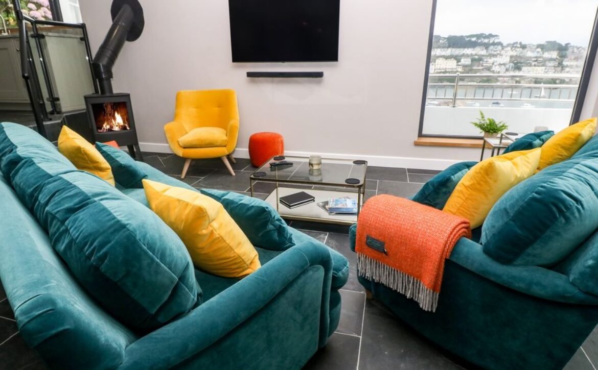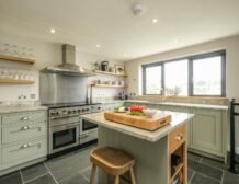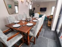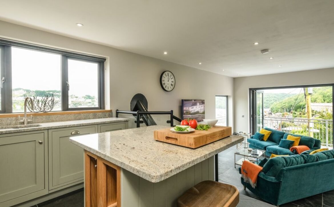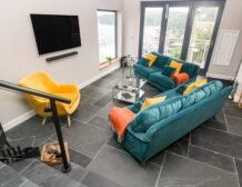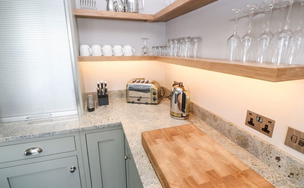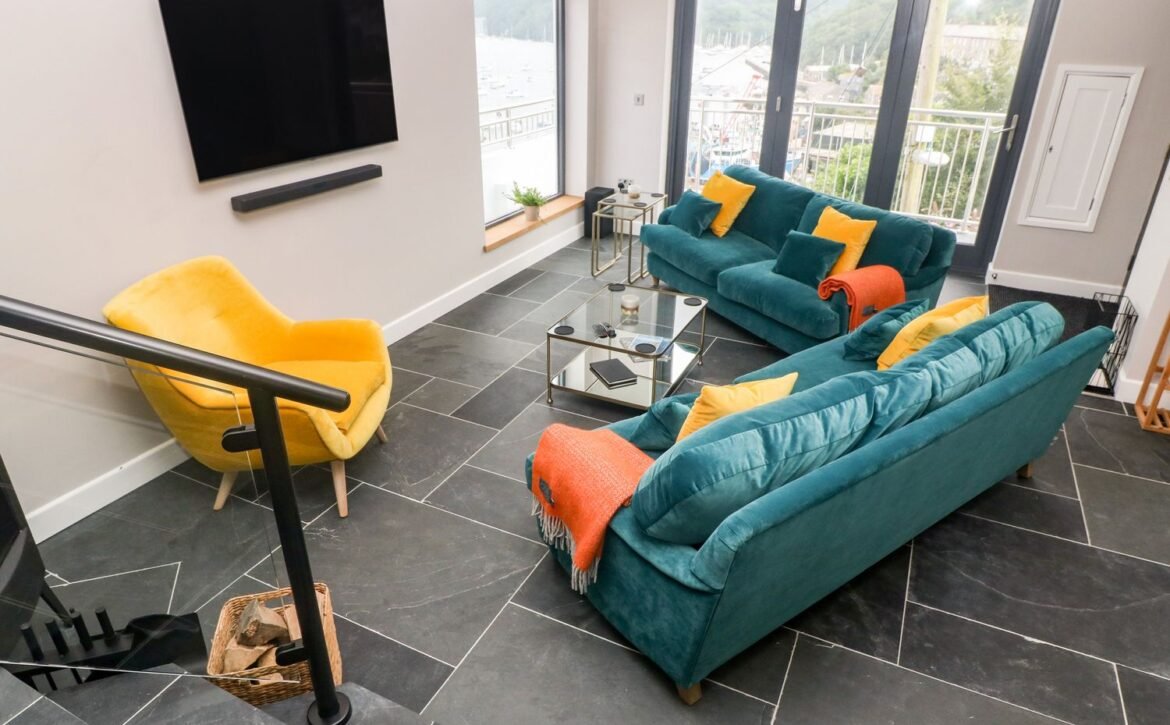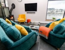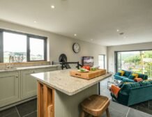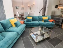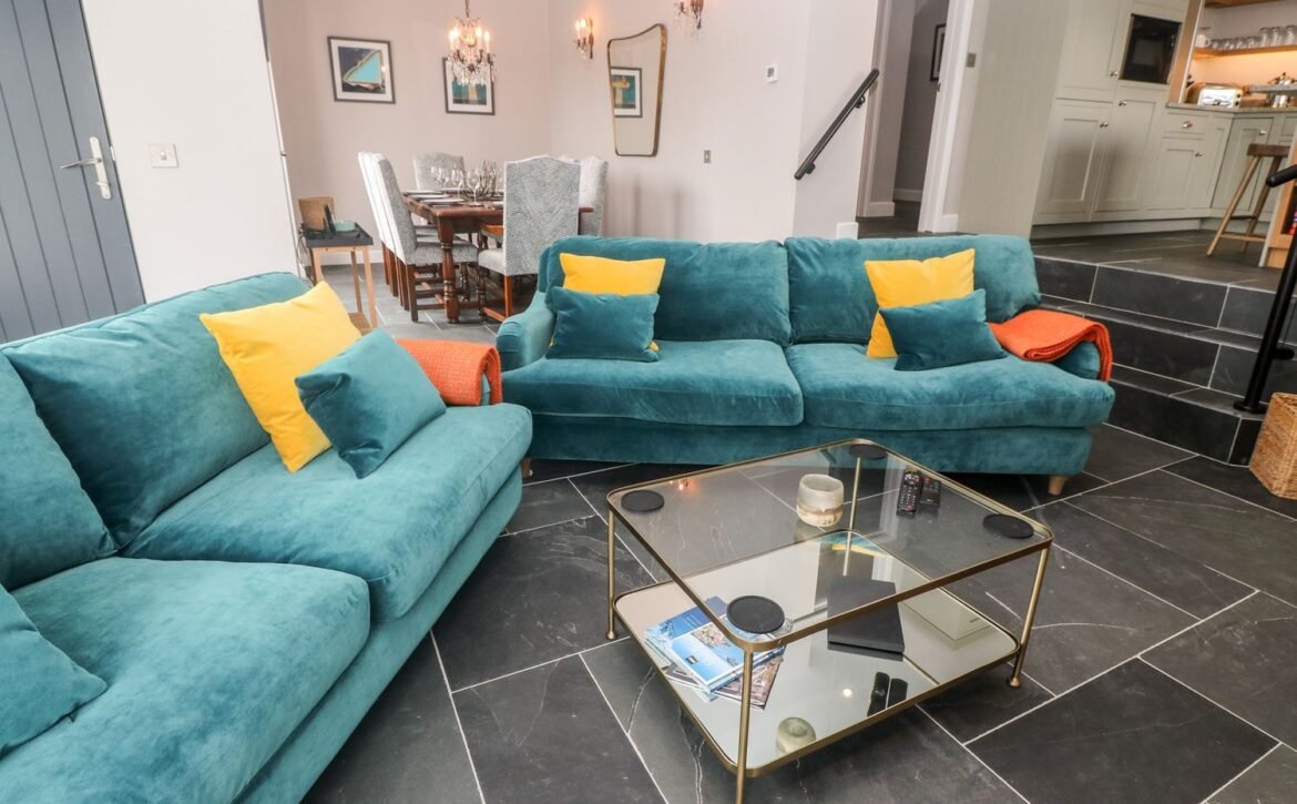 Be charmed by the contemporary open-plan living space with kitchen, dining and sitting area, where you can relax with a glass of wine on the velvet teal sofas in front of your favourite film on the Smart TV as the woodburning stove crackles nearby complimented by under floor heating.