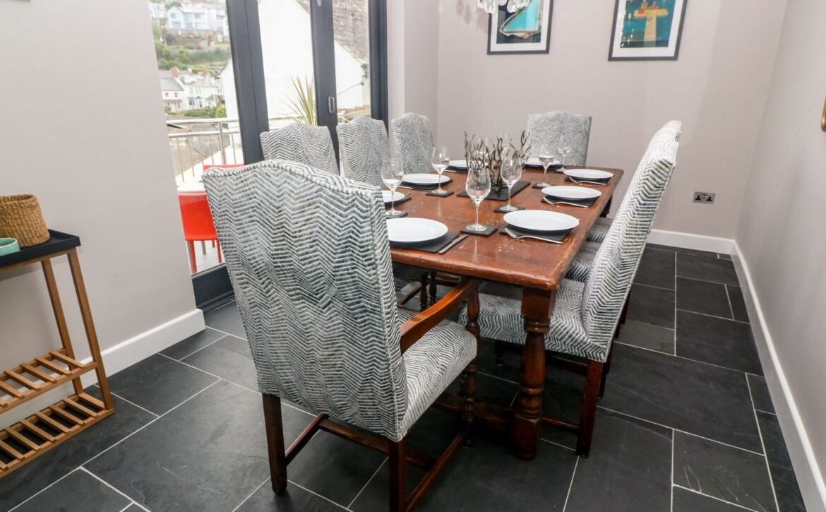 Climb the slate steps up to the property, where a delightful balcony with seating area will greet you, perfect for enjoying a morning coffee and watching the world go by.