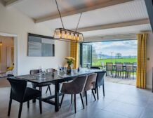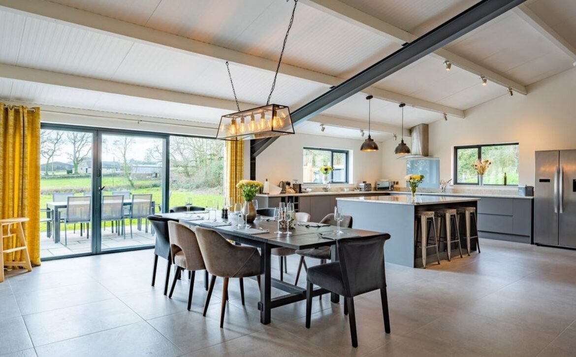 - Open-plan living space with kitchen, dining area and sitting area
